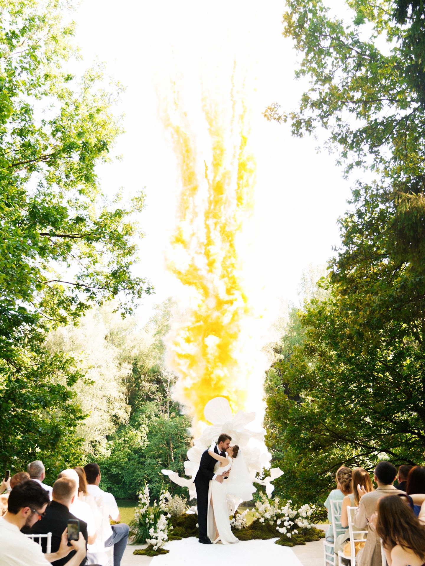 Церемония прошла как в кино: наш ведущий Степан Яценко рассказал историю нашей любви так, что прослезились даже самые стойкие гости. А в момент нашего с Гошей поцелуя небо озарил ярко-оранжевый дневной салют.
