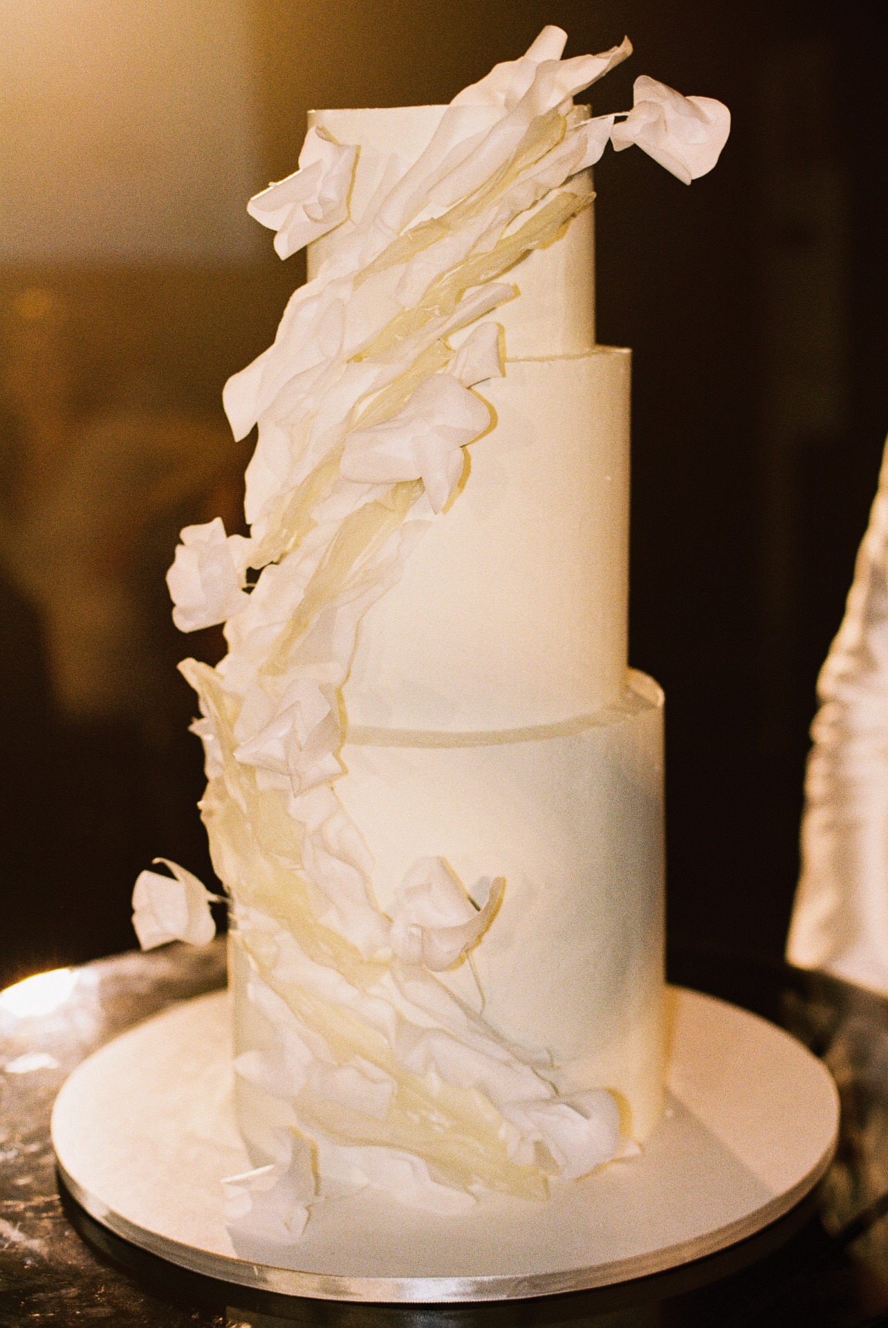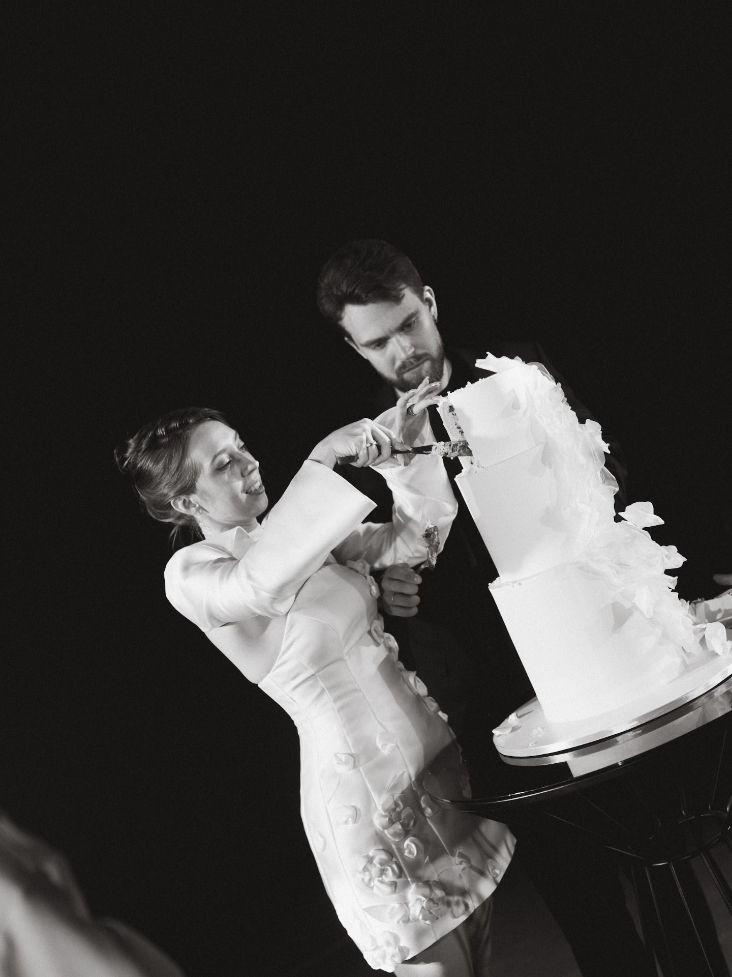 Вечер завершился тортом, нашими словами благодарности гостям и сюрпризом от организаторов. Они создали для нас клип из видео, снятых на VHS-камеру. В финале ребята добавили видеоролики прямо со свадьбы — это было очень неожиданно и круто!