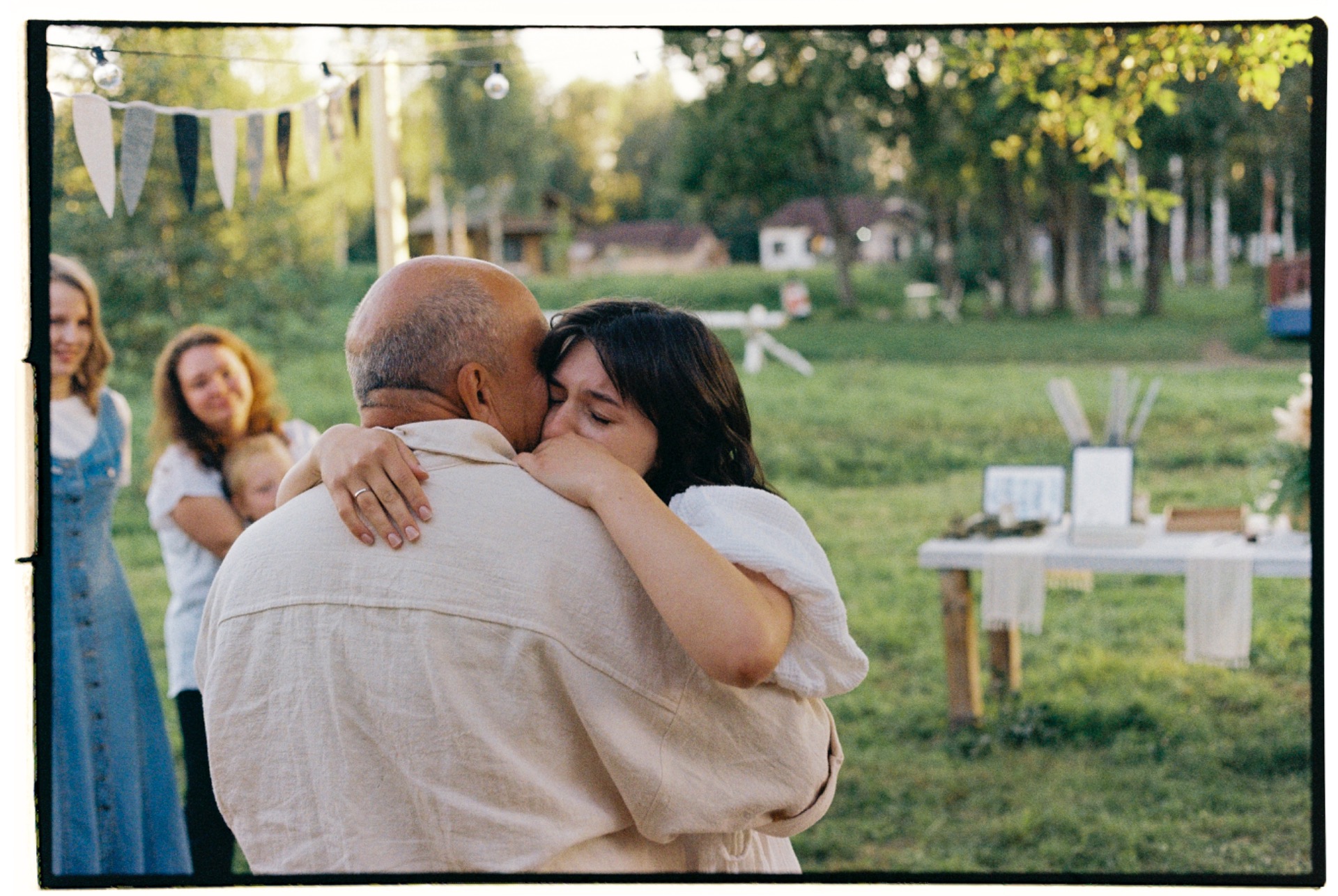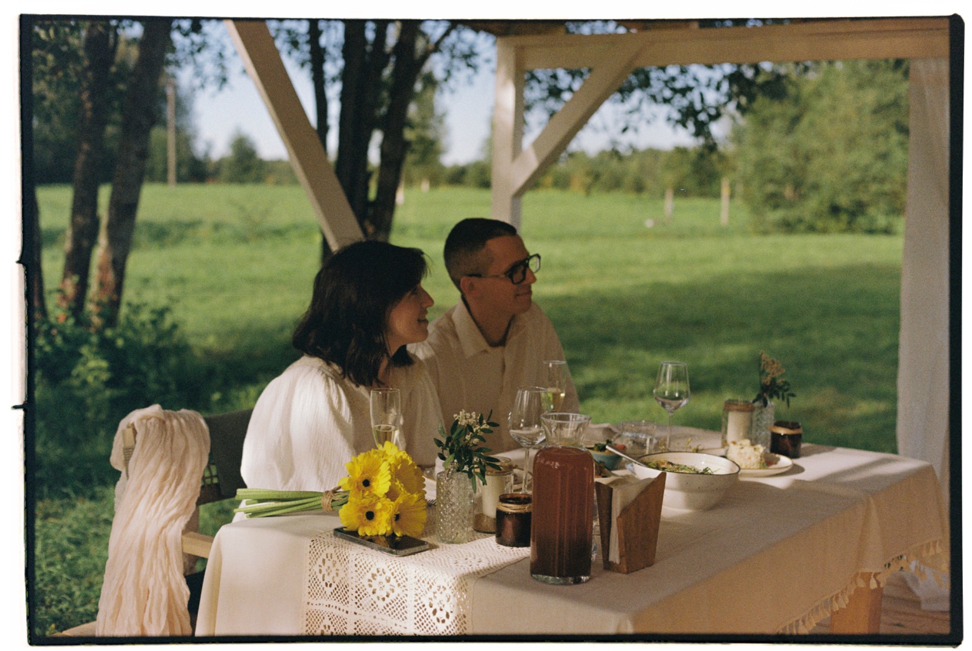 Это был лучший день в нашей жизни. Тёплый августовский вечер, свет гирлянд, запах сена, голоса друзей: всё было очень живым и настоящим. Мы много танцевали на коврах, смеялись, обнимались и ели панкейки.