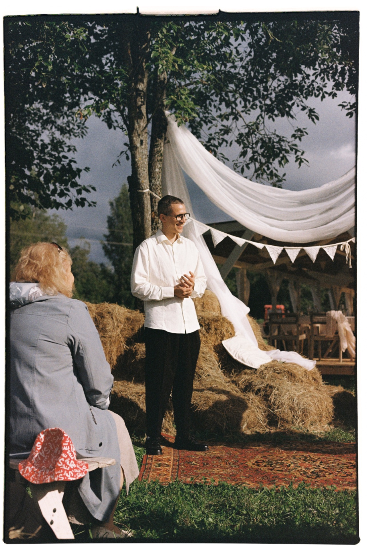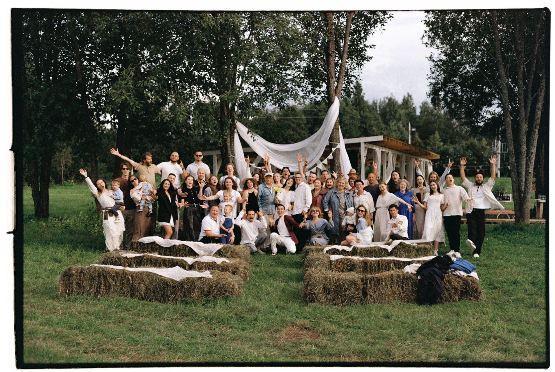 На церемонии, кажется, не заплакали только дети. Вместо стульев у нас были тюки сена — получилось невероятно уютно и по-домашнему.