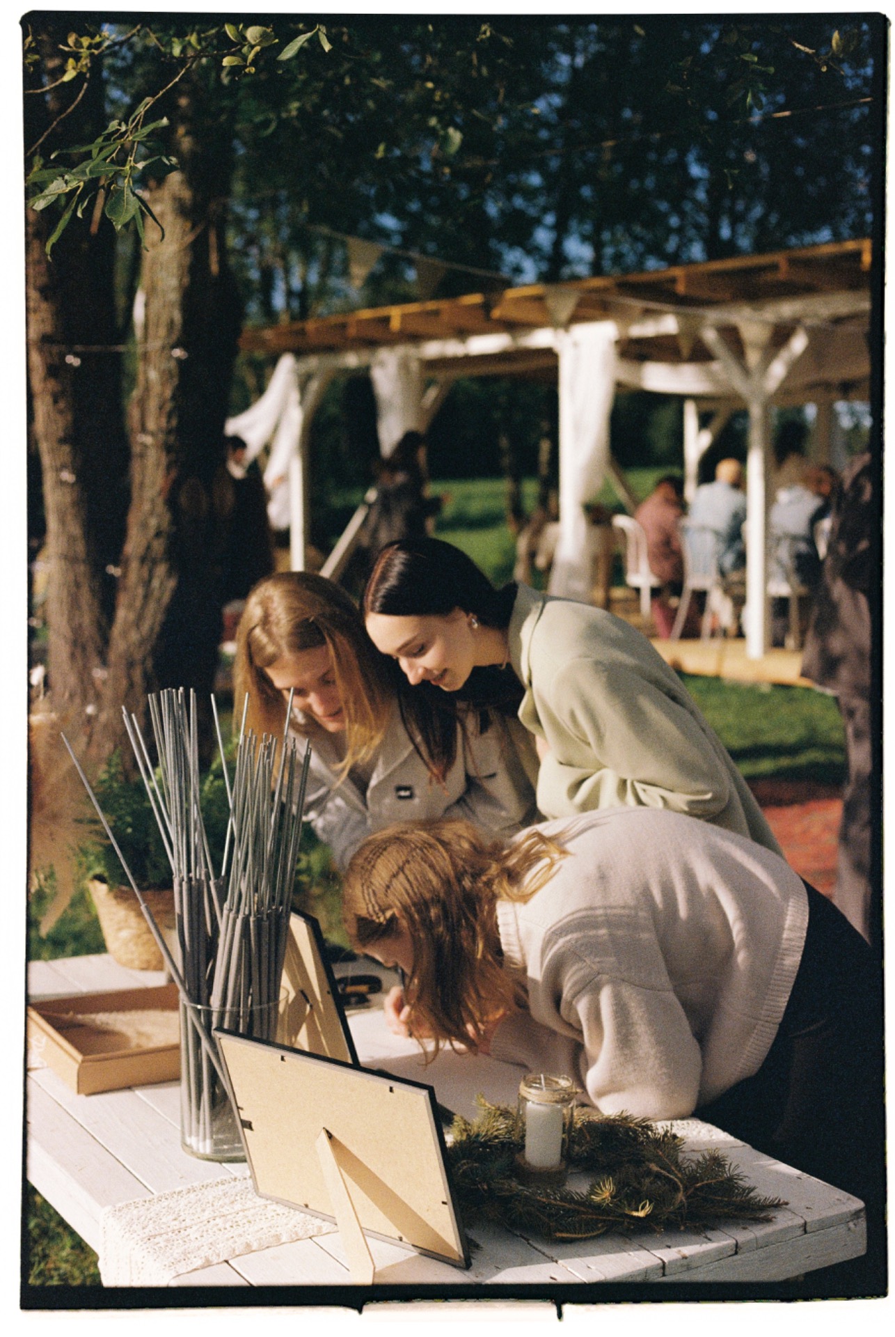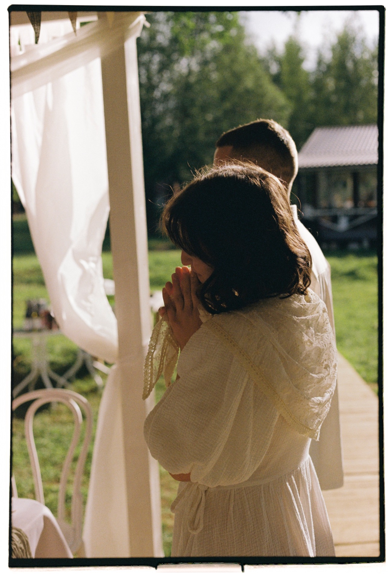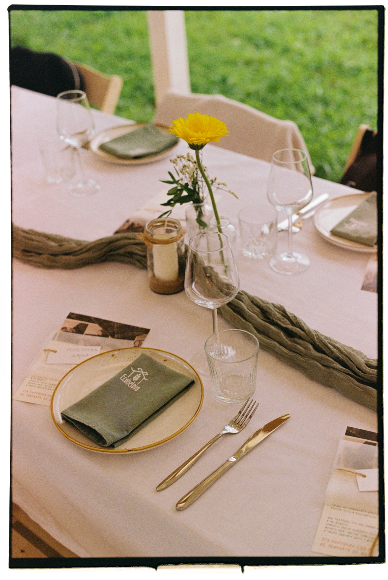 Мы создали общий чат в Telegram, куда скидывали все свои референсы. Хотелось, чтобы свадьба ощущалась как дачный праздник у друзей. Мы не обозначали гостям строгий дресс-код — важно было, чтобы каждому было комфортно.