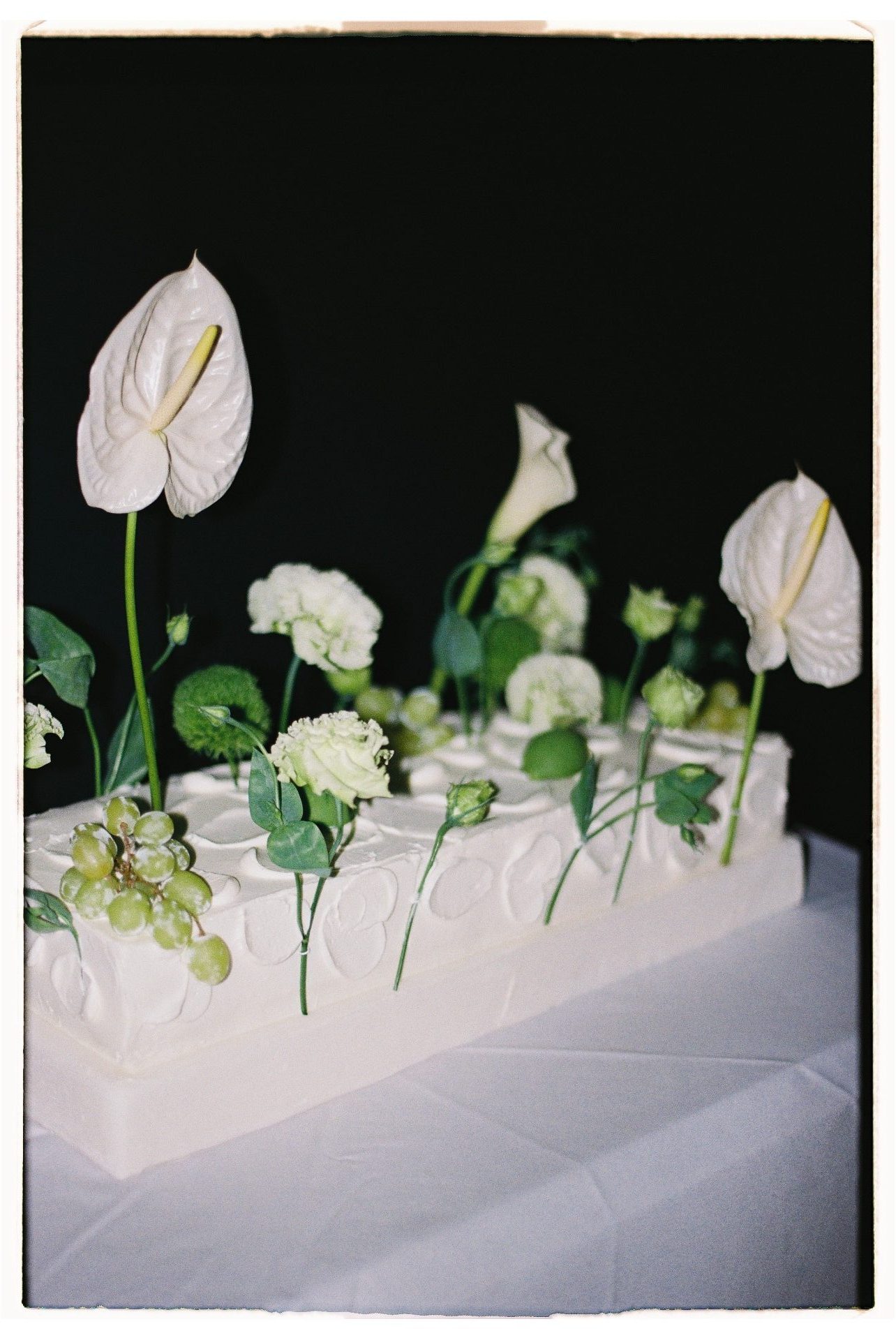 Вдохновение для торта мы искали на Pinterest и остановили свой выбор на торте прямоугольной формы, украшенном цветами и фруктами.