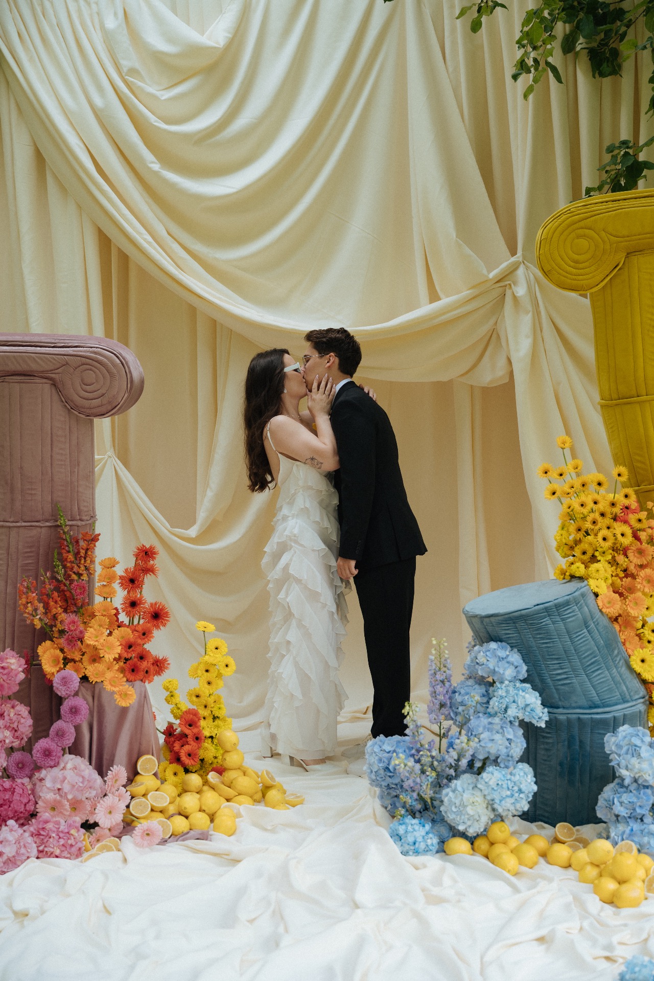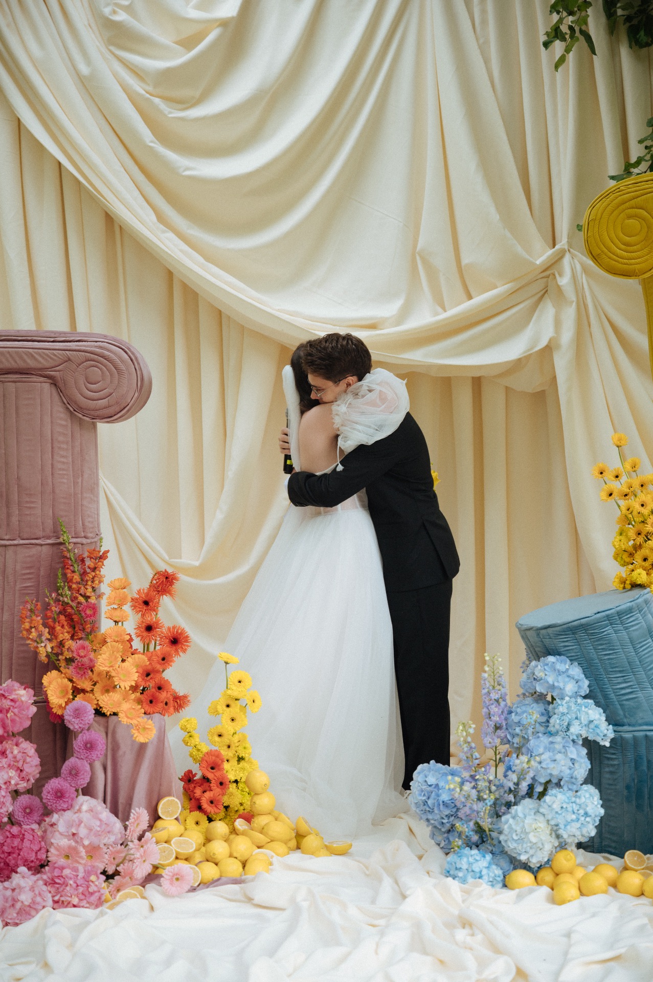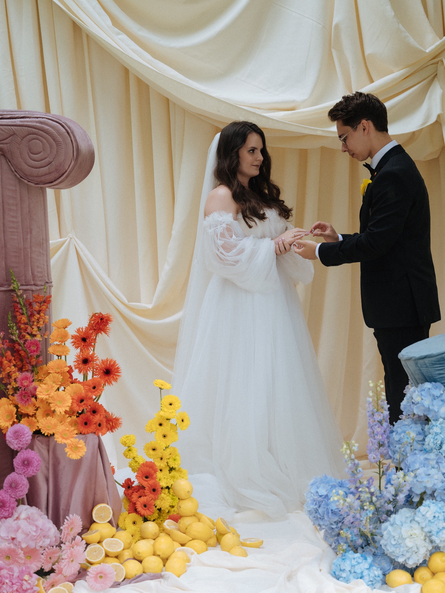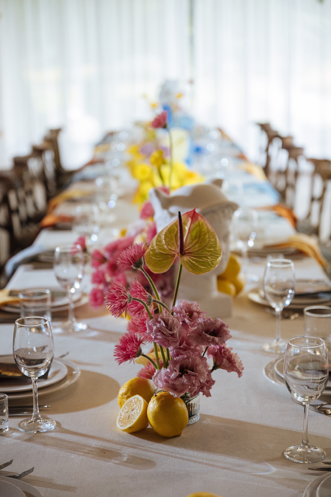 Мы готовились полгода. Нам хотелось лёгкую и весёлую свадьбу, но в голове была только одна мысль без конкретной картинки: мы хотим много цветов во всех смыслах слова, а ещё нам очень нравится идея декора с лимонами.