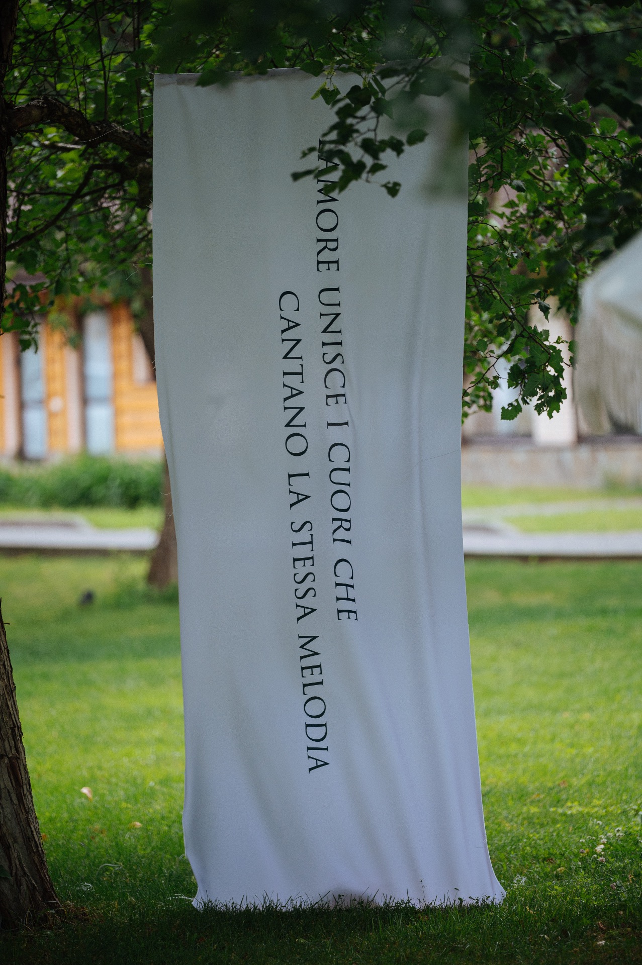 Самым сложным в декоре было согласование деталей. Мы очень долго и тщательно прорабатывали каждую из них, стараясь, чтобы концепция была выдержана во всём, но при этом смета не улетела в космос. Так мы создали карточки рассадки с репродукциями известных итальянских полотен, салфетки и мягкую лаунж-мебель для гостей в тон дресс-коду, зонтики от солнца и веера в настроении солнечной Италии и тканевые полотна с цитатами о любви на итальянском. Также мы сами разработали дизайн коктейльной карты с отсылками к дорогим нам вещам.