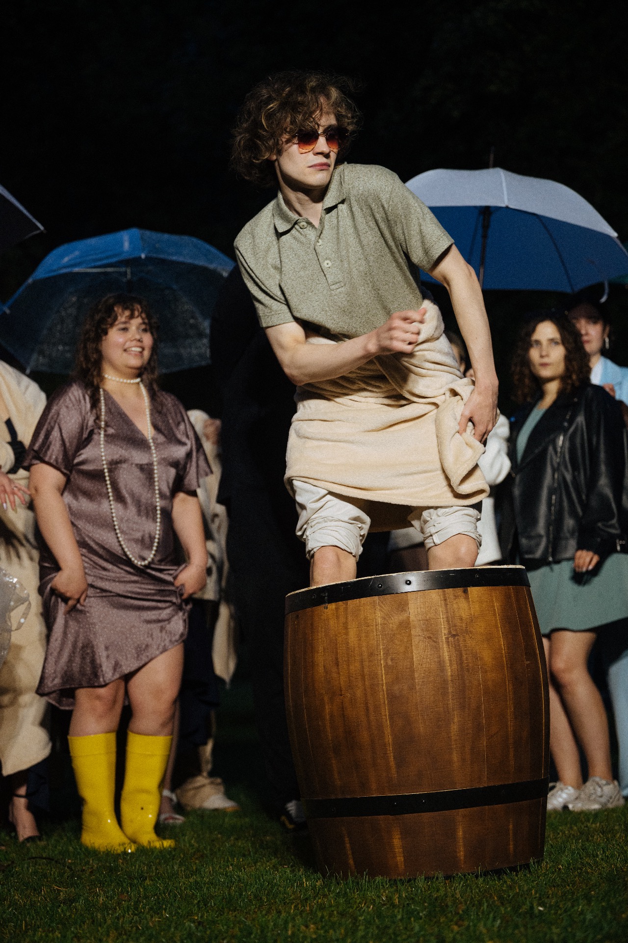 Из наиболее интересных развлечений были бочки с виноградом, где ведущий устроил танцевальный баттл, а потом не удержался и залез туда сам.