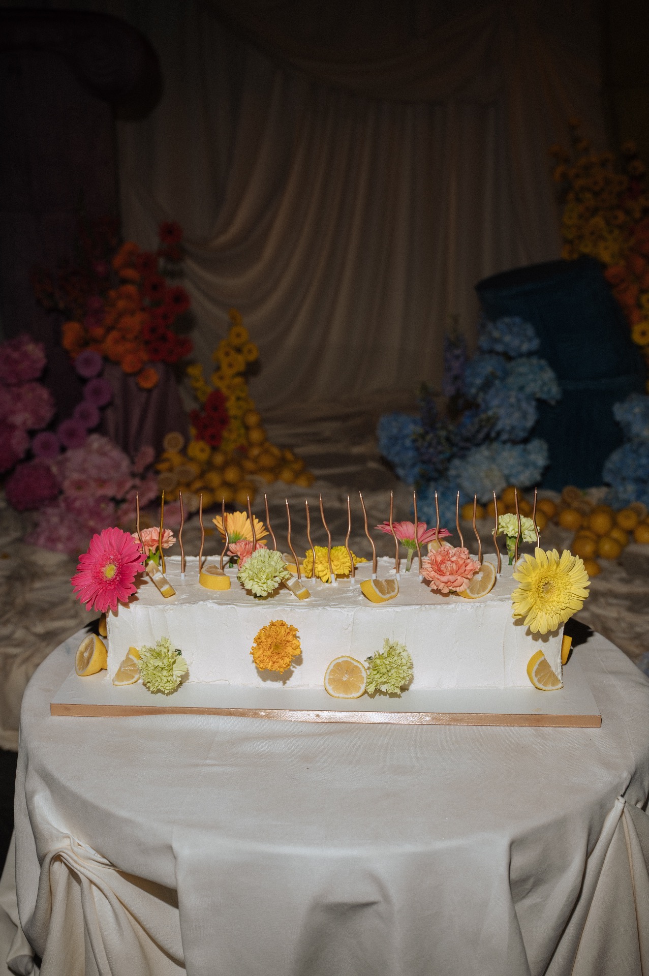 Торт мечты пришёл к нам с трендами из соцсетей: длинный одноярусный, с декором из цветов и лимонов. Мы влюбились в такую концепцию, как только увидели её, и поняли, что обязательно задуем на нём свечи в честь дня рождения нашей семьи.