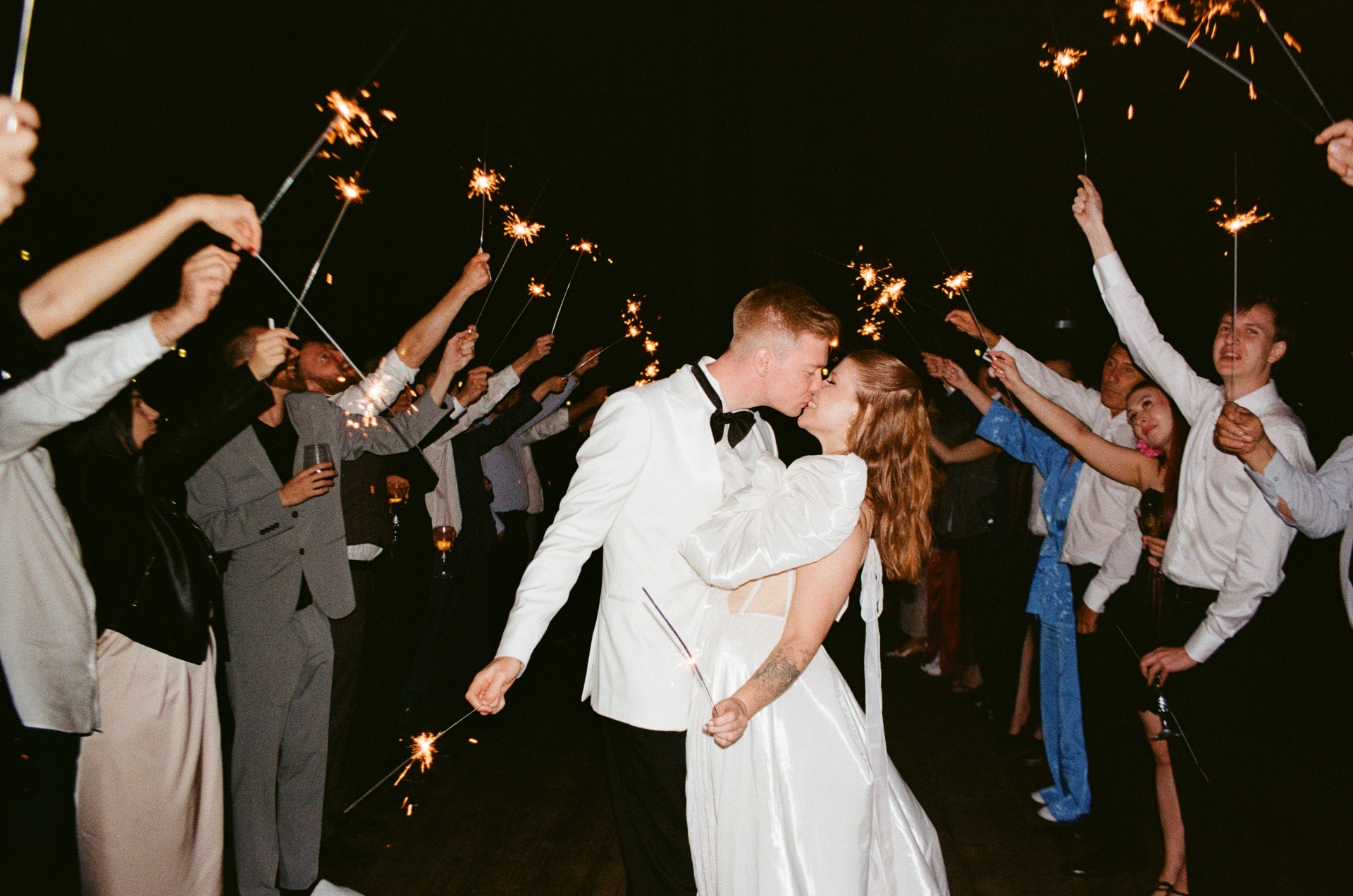 Цвета дресс-кода для гостей были, как у диких полевых цветов: розовый, фиолетовый, голубой, жёлтый. Ярко, свободно, без обязательных рамок.