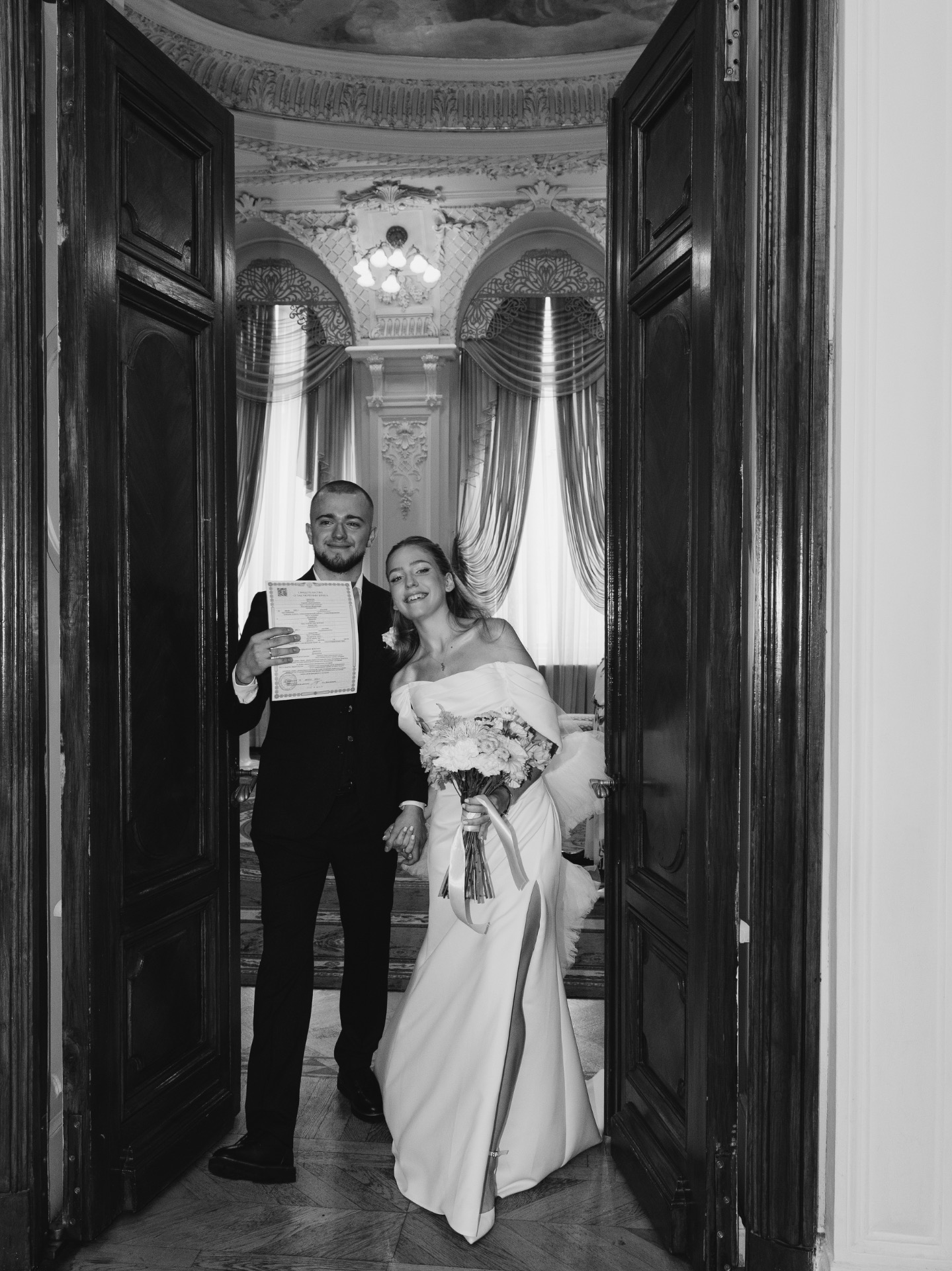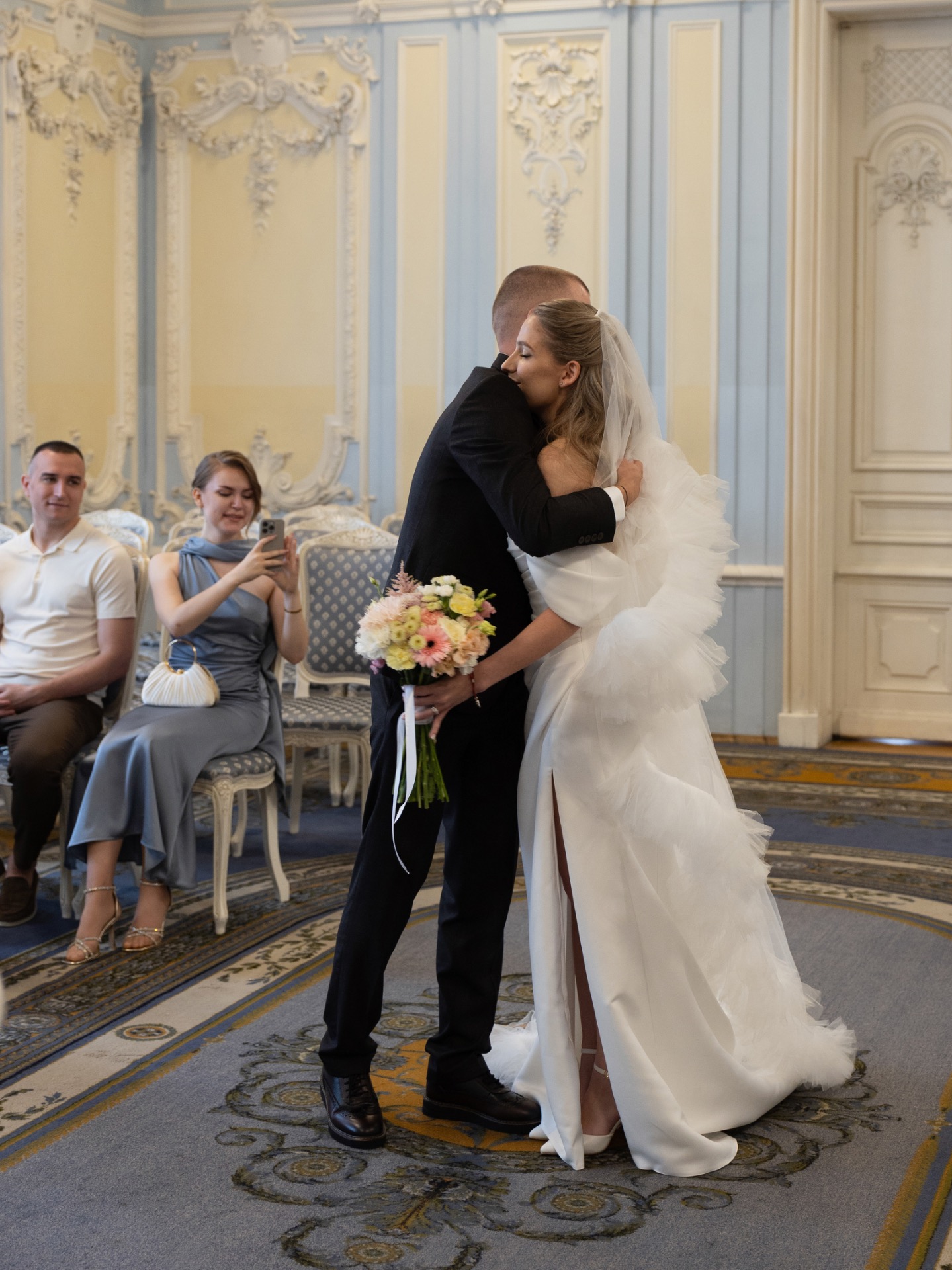 Как и у большинства пар, наш день пролетел за секунду. Он был наполнен трепетом, любовью, счастьем, улыбками. У нас была невероятная церемония регистрации на локации, и трудно было сдержать слёзы от красоты и нежности.