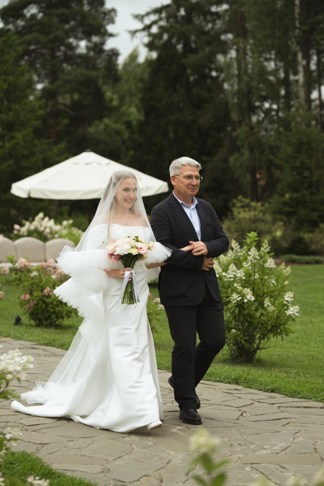 Мы выбрали достаточно классические лаконичные образы — вне времени и трендов. Оба мои платья были куплены с первого раза, на первой примерке.