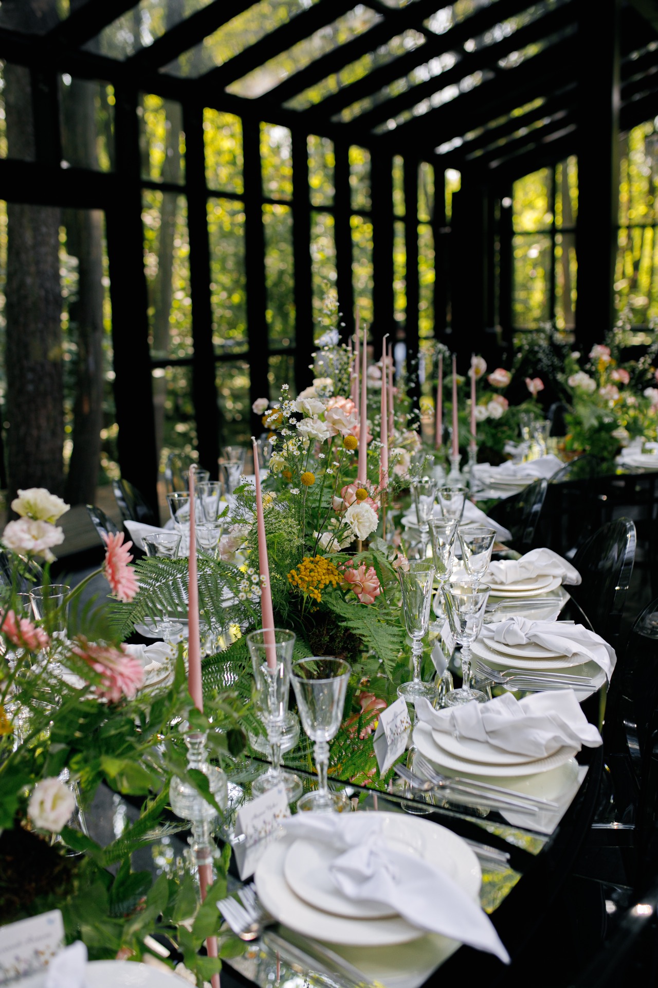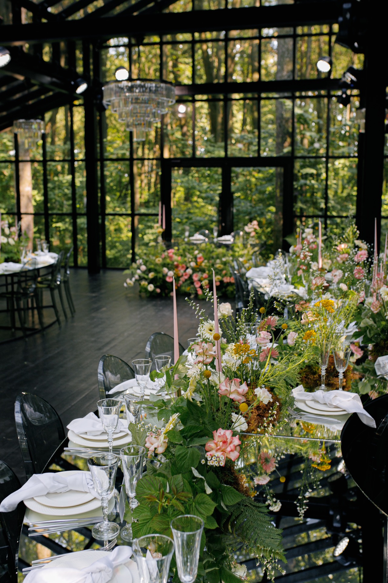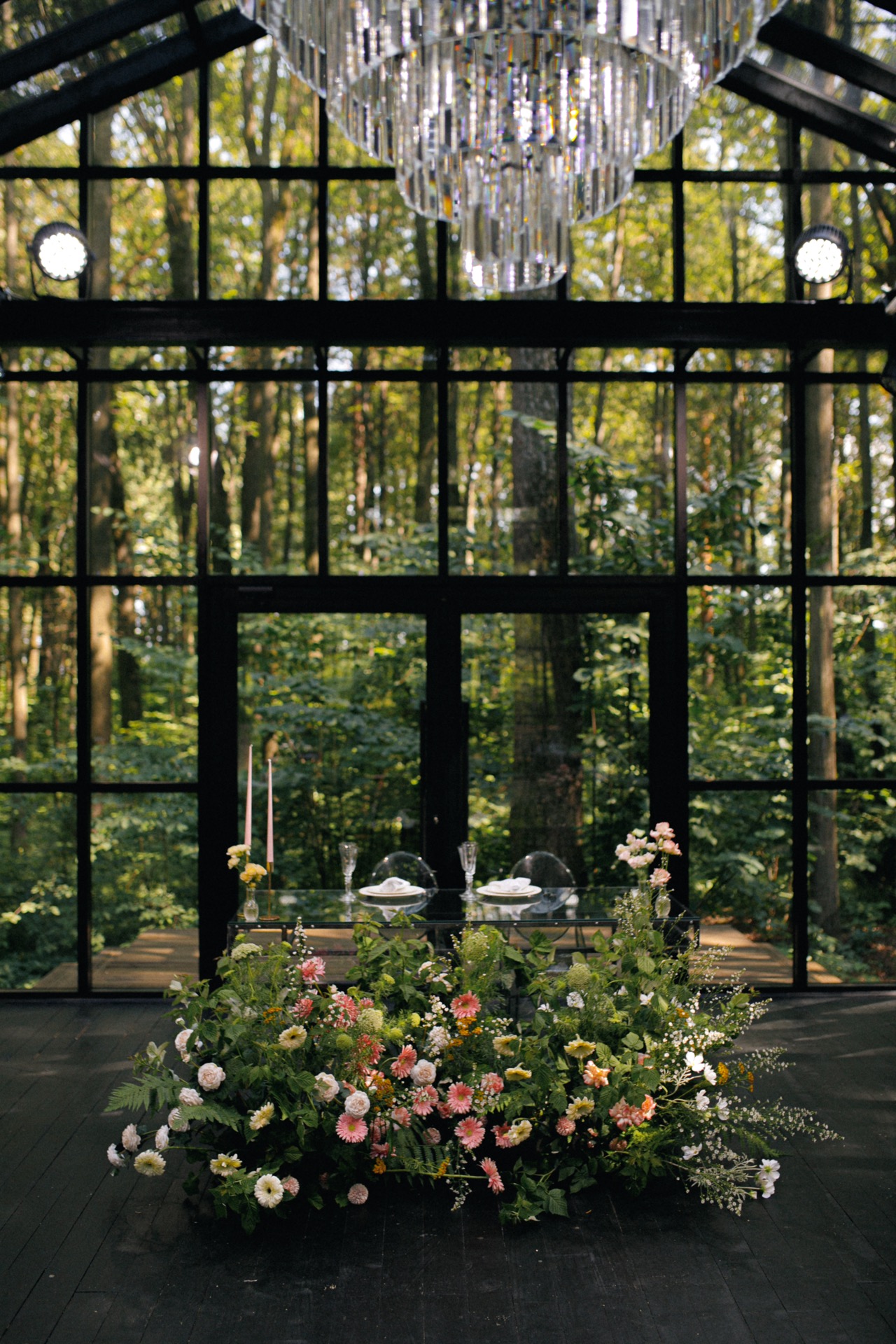 С концепцией мы определились почти сразу. Площадка — стеклянная оранжерея посреди леса, уже сама по себе выглядела, как настоящее волшебство. Мы лишь хотели усилить эту сказочную атмосферу с помощью декора.