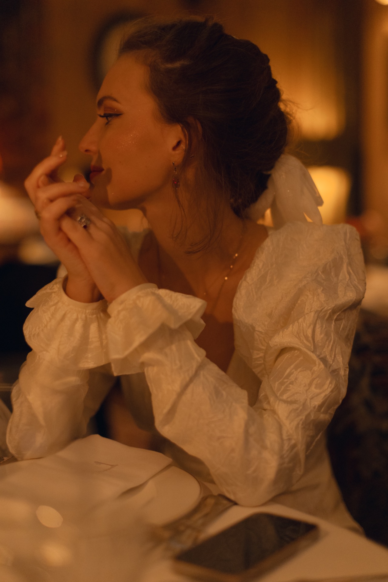 Утром я собралась сама, вкусно позавтракала, сделала макияж. Потом мы поехали в консульство. После росписи там мы устроили прогулку с фотосессией в центре Парижа. Прямо на улице, с видом на Эйфелеву башню, мы провели выездную церемонию. Филипп зачитал клятву, в которой звучала фраза «я тебя люблю» на всех языках мира.