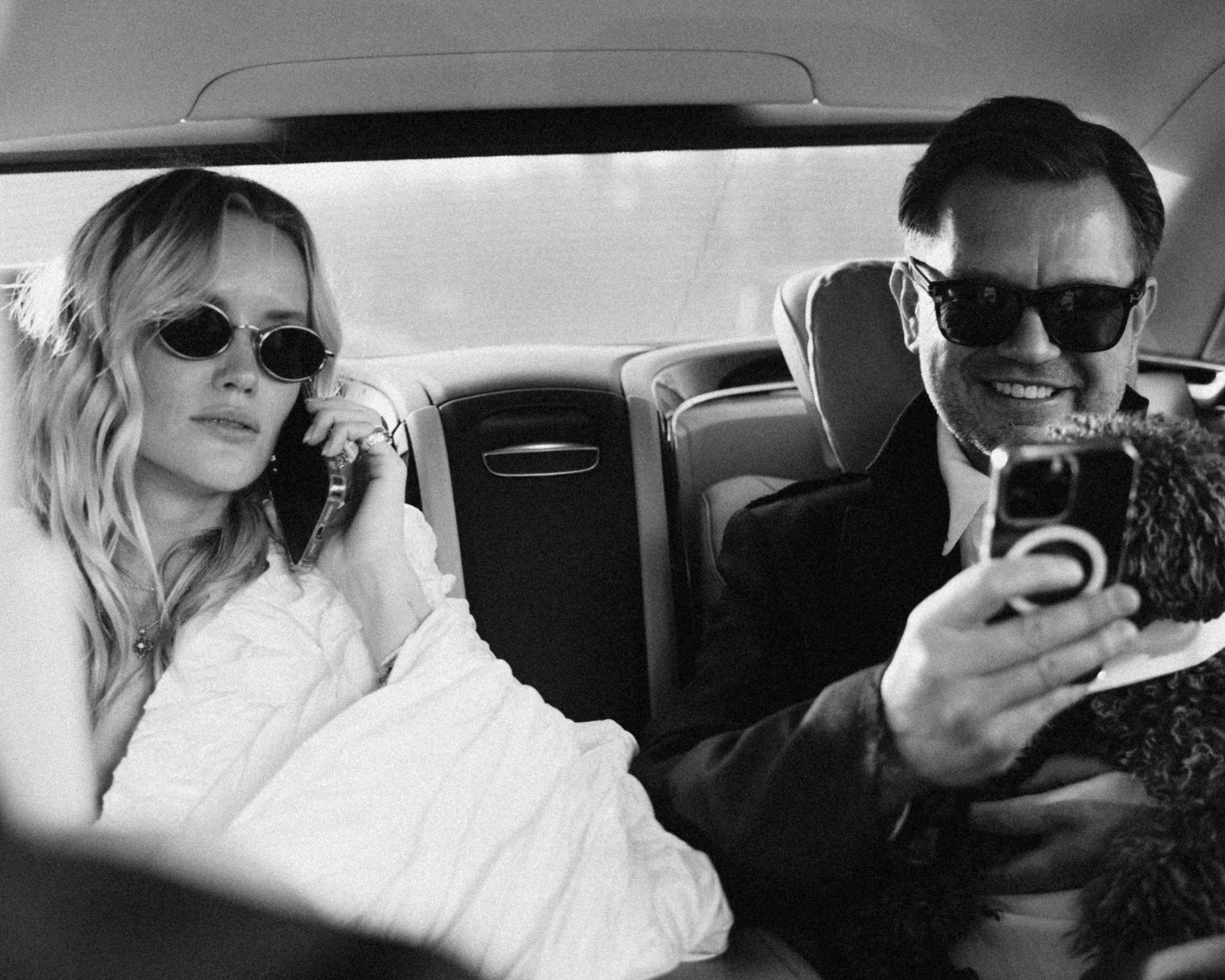 Дима выбрал двусторонний костюм от Ianis Chamalidy: на официальной части он надел его классической, чёрной стороной, а на фуршет — креативной, с авторским принтом от Яниса.