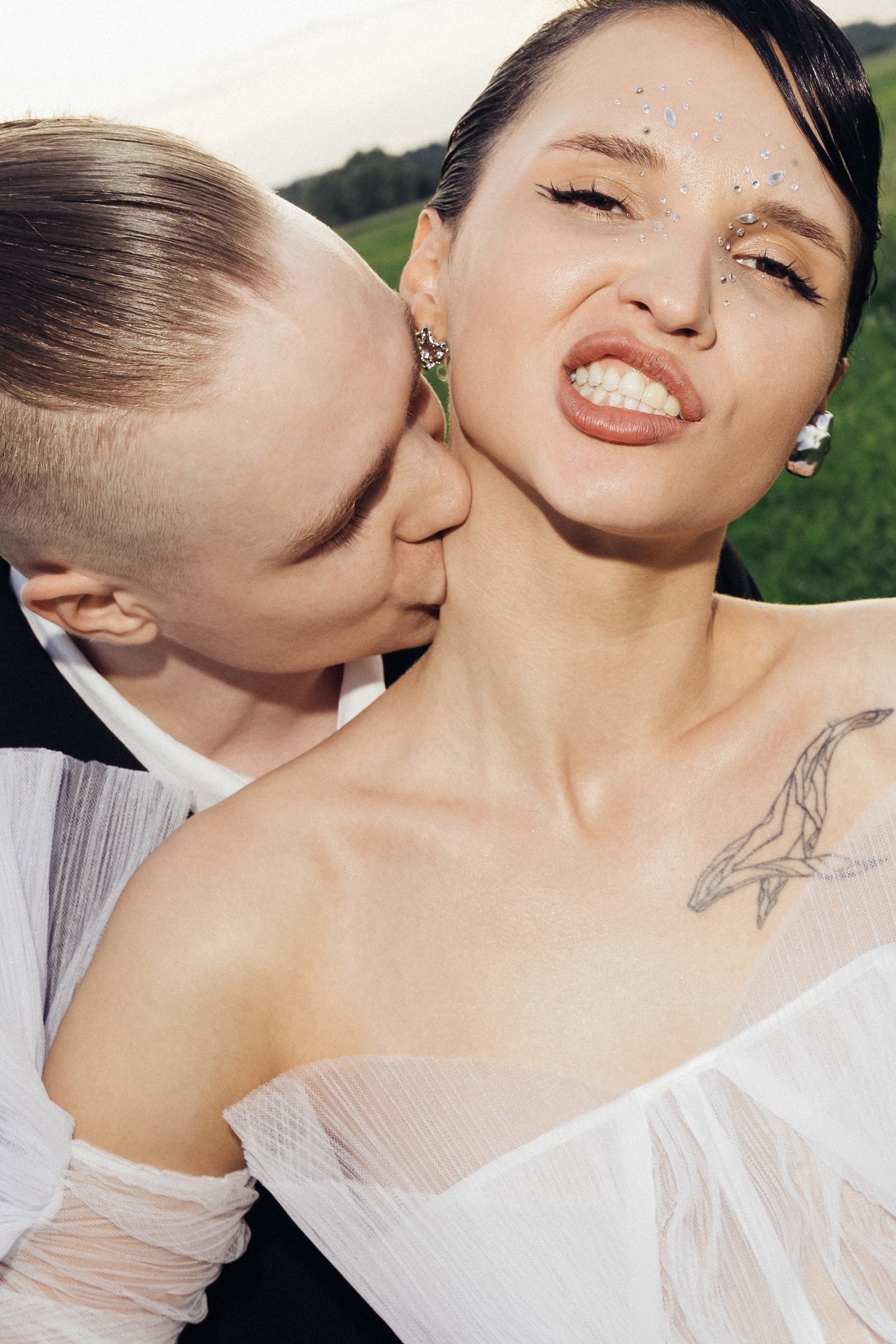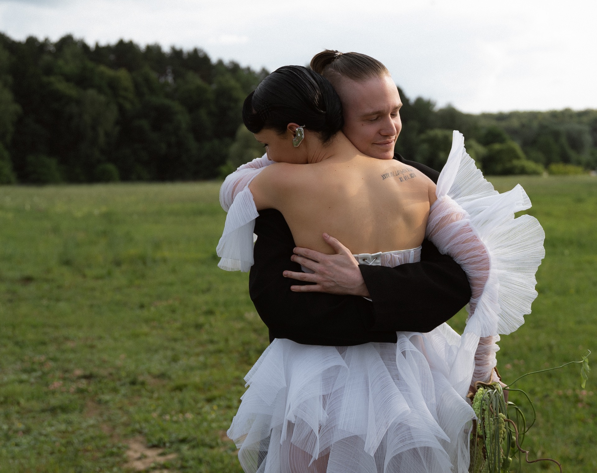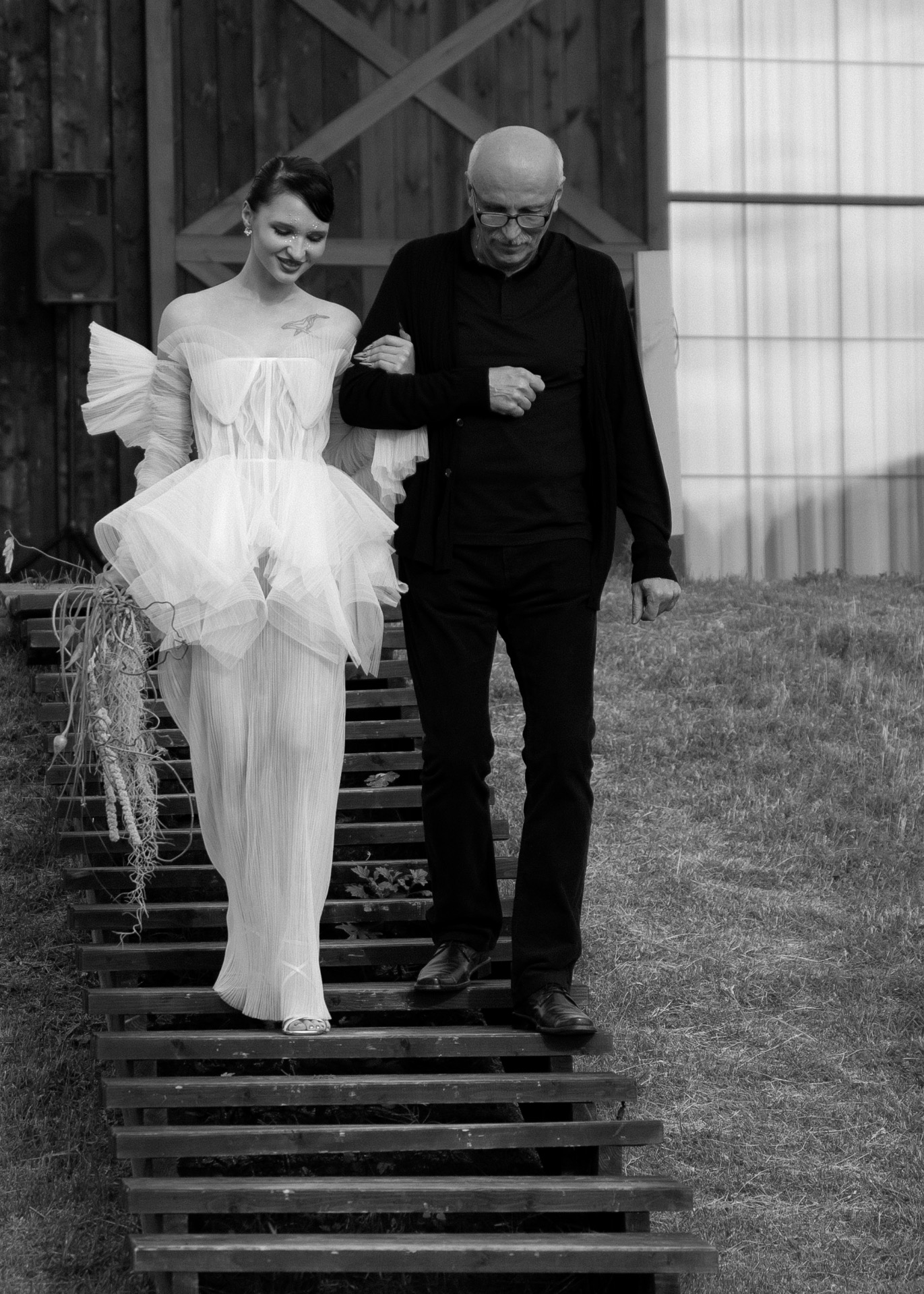 Я была спокойна ровно до того момента, пока мы не встретились с папой. Из-за угла я увидела наших красивых гостей, и папа начал плакать. После этого мне тоже стало волнительно. Церемония была самым трогательным и эмоциональным моментом дня. Свою речь я готовила полгода, во время неё плакали все, включая Влада. Кольца для нас тоже вынесли особым способом: мы расположили их на палках, соединённых в букет.
