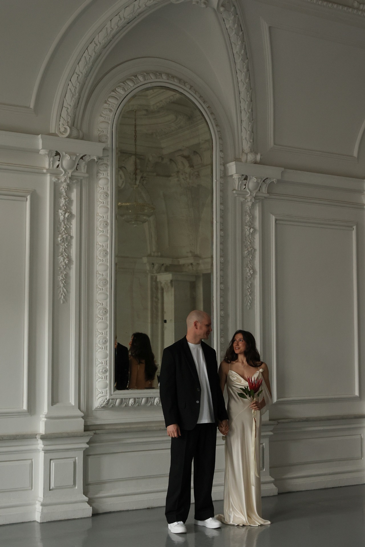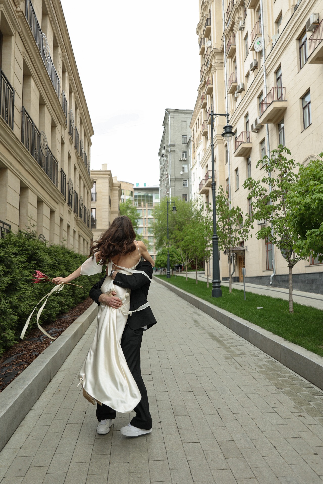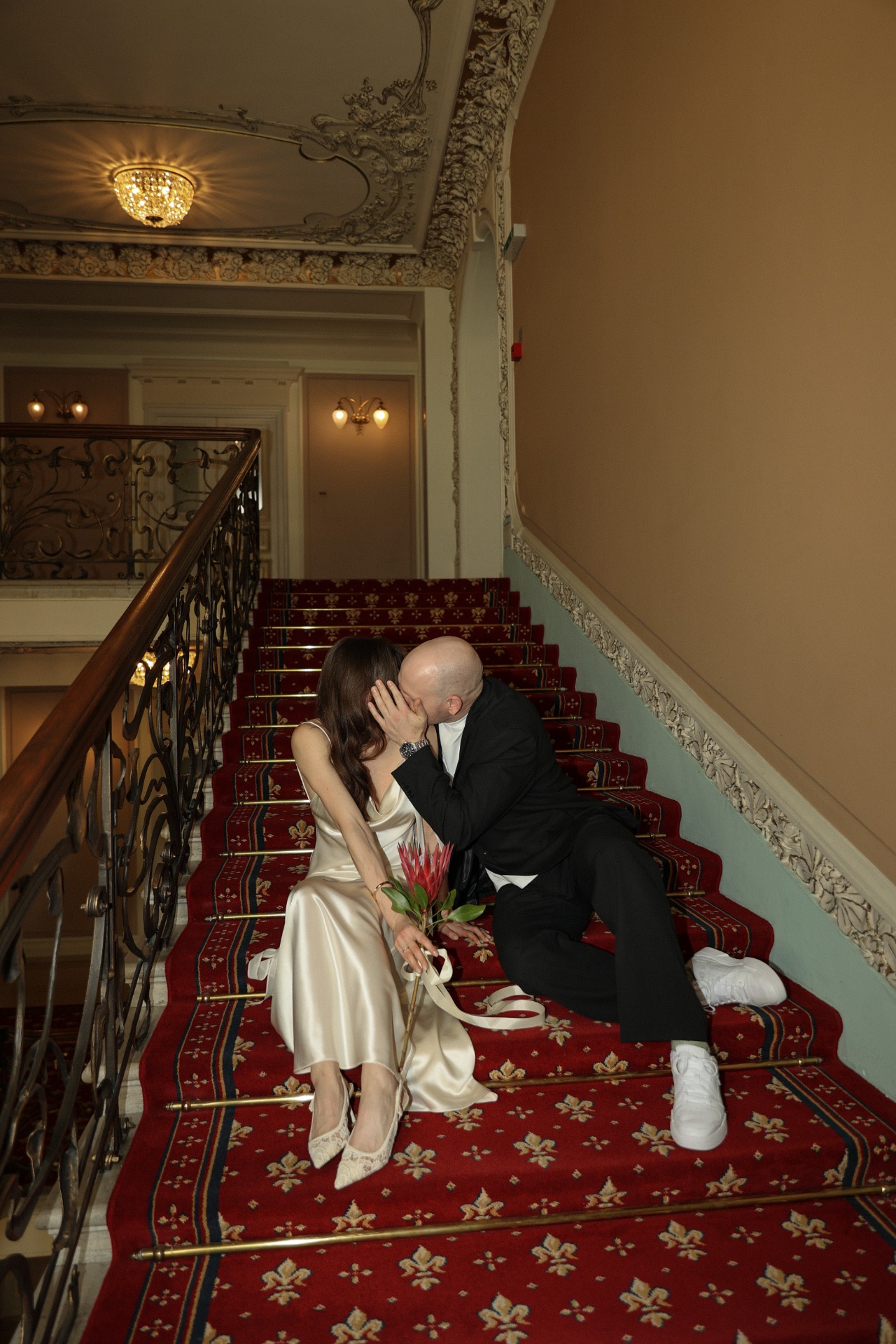 Роспись прошла в ЗАГСе на Тверской, всего в нескольких минутах от отеля. Мы успели прогуляться по весенним улочкам центра Москвы, когда город только просыпается и наполняется светом. Торжество продолжилось в особняке Спиридонова — в невероятно красивом и светлом пространстве, где каждый уголок будто создан для праздника. Во время церемонии неожиданно пошёл ливень, который тут же закончился — для нас это стало символом обновления и начала новой жизни.