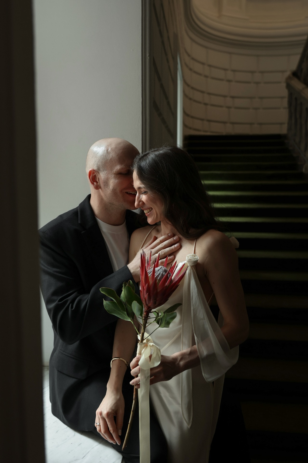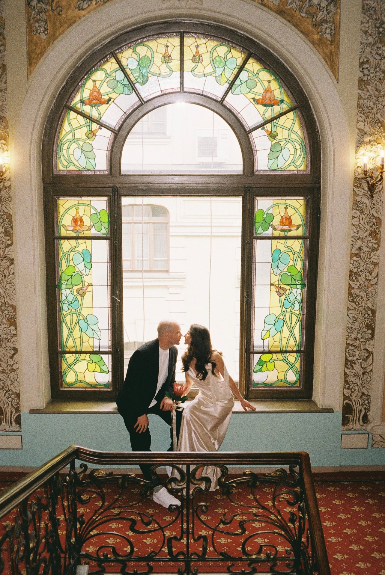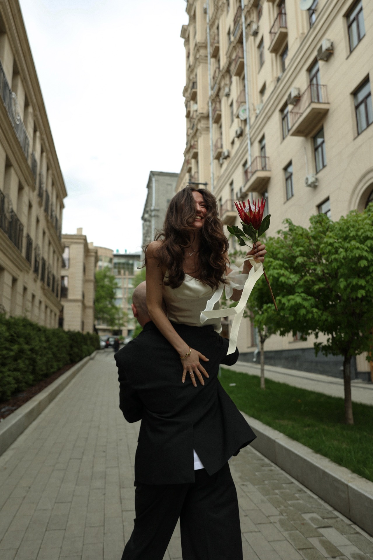 Роспись прошла в ЗАГСе на Тверской, всего в нескольких минутах от отеля. Мы успели прогуляться по весенним улочкам центра Москвы, когда город только просыпается и наполняется светом. Торжество продолжилось в особняке Спиридонова — в невероятно красивом и светлом пространстве, где каждый уголок будто создан для праздника. Во время церемонии неожиданно пошёл ливень, который тут же закончился — для нас это стало символом обновления и начала новой жизни.