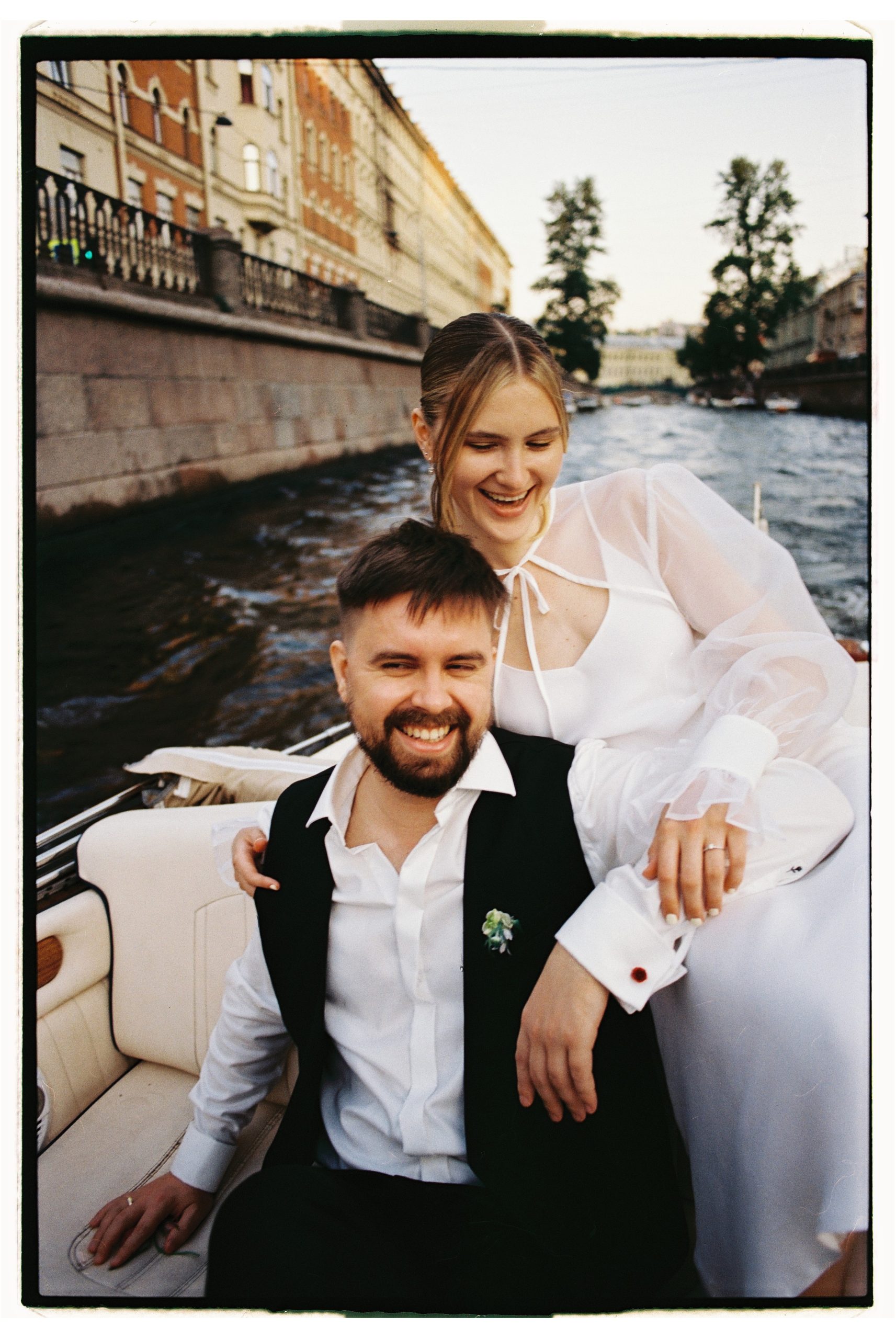 Мы хотели оставить этот день только для нас двоих, поэтому попросили всех (при наличии очень большого желания) приехать только в ЗАГС. А после росписи мы побежали кататься на катере, и это было лучшее решение в жизни. Представьте: любимый город, солнце, Нева, люди вокруг машут нам и улыбаются, как будто мы — главные герои, но не только своей жизни. В тот день меня окутывало неописуемое счастье.