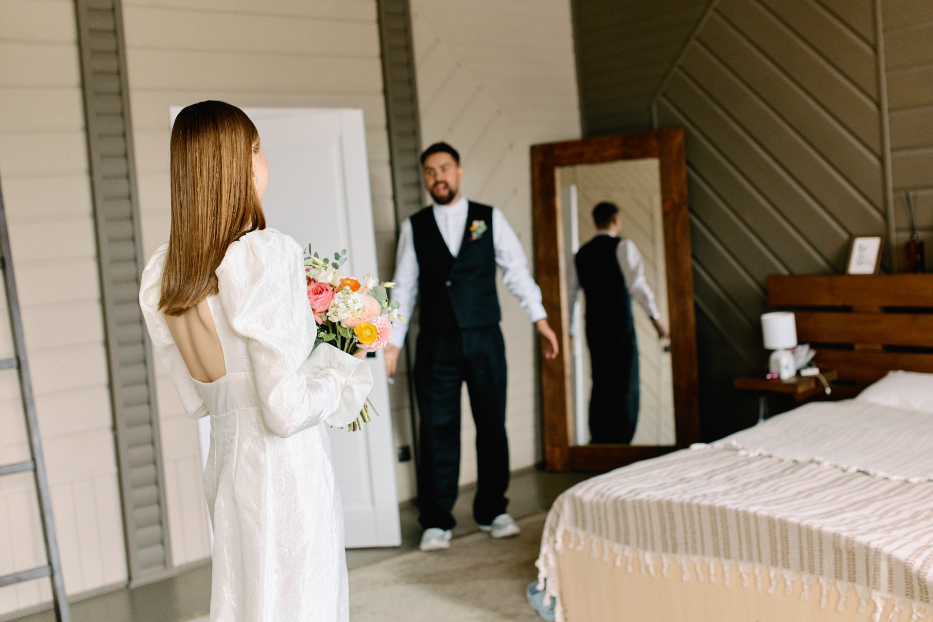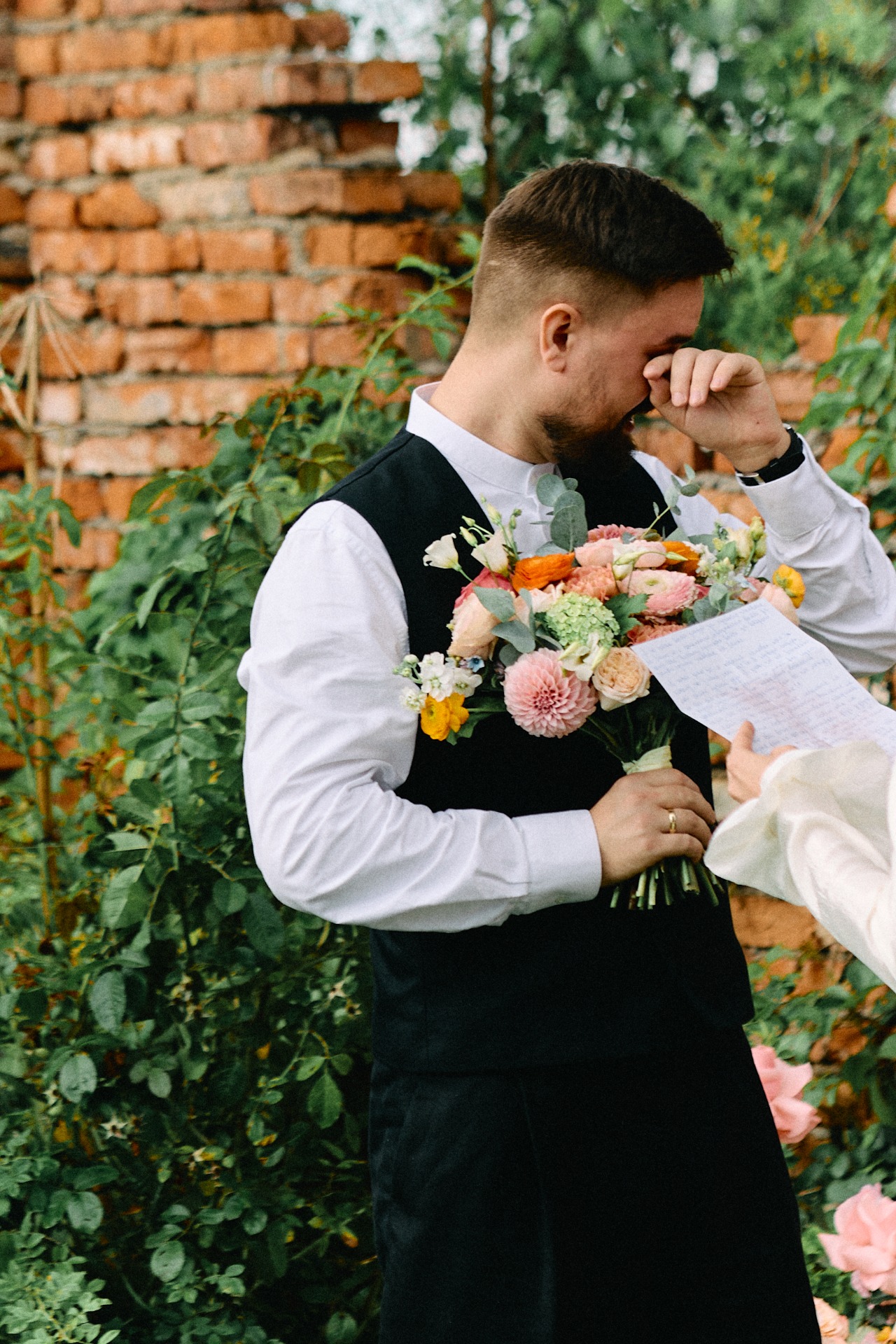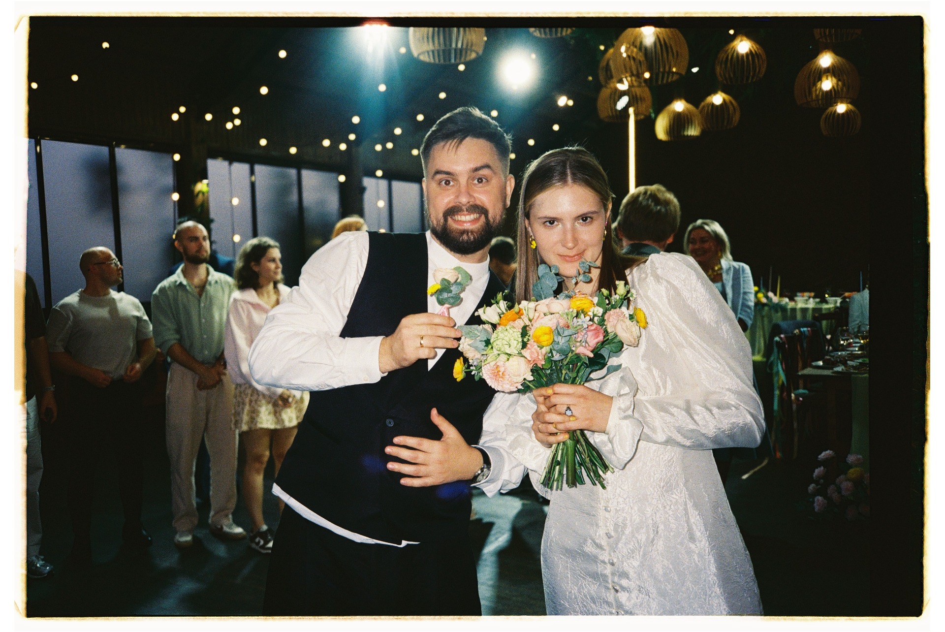 Церемония, конечно же, стала самым трогательным моментом. Мы плакали и смеялись. Я довела Рому до слёз, чем особенно горжусь, потому что суровые сибирские мужики обычно не плачут. В конце церемонии начался дождь, и пока я заканчивала свою речь, Рома заботливо накрыл мою голову букетом. Потом мы все побежали на веранду, и появилась радуга. Никогда не забуду этот момент!