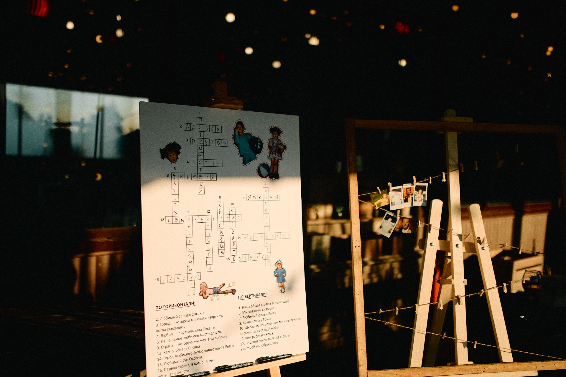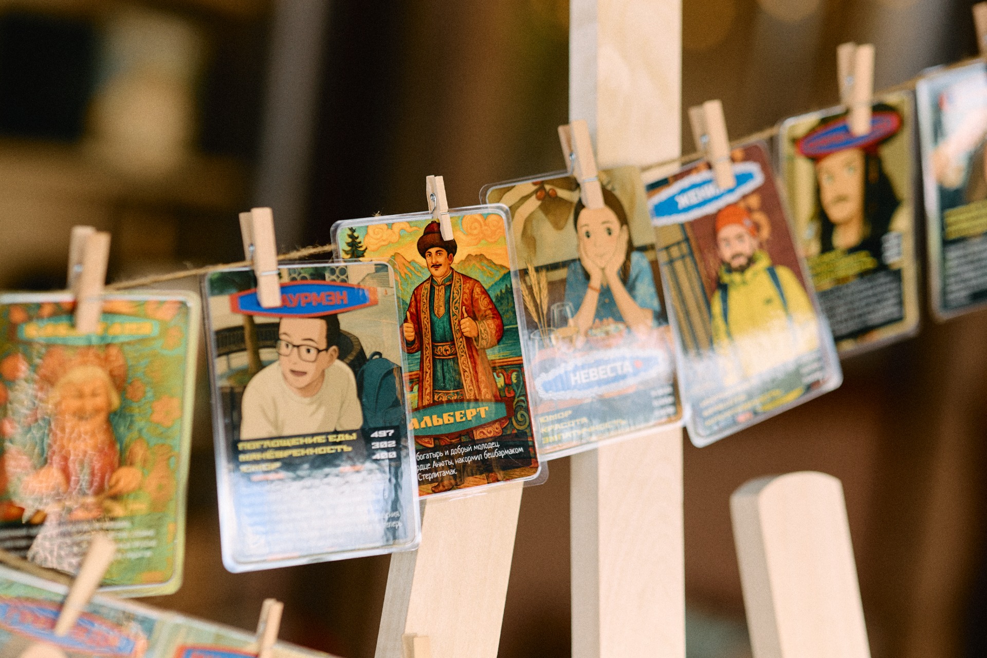 Мне очень нравятся 2D-иллюстрации, я долго собирала примеры и в итоге объединила их в идеальные для меня приглашения. А для гостей мы сгенерировали карточки в стиле покемонов с разными прикольными сверхспособностями и развесили их у входа в зал, чтобы каждый мог найти себя.