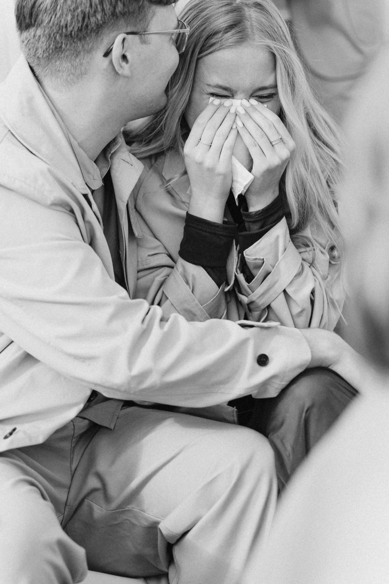 Предложение он сделал 7 мая. Илья спросил Настю, куда бы она хотела пойти поужинать. Она выбрала ресторан Villa Pasta. После ужина они, как обычно, пошли гулять. По пути к мосту, где они впервые взялись за руки, Илья вдруг встал на одно колено и сделал Насте предложение.