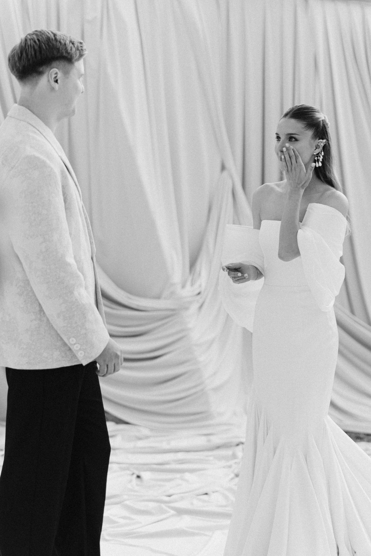Затем состоялась первая встреча — момент, когда Илья впервые увидел Настю в её свадебном образе.