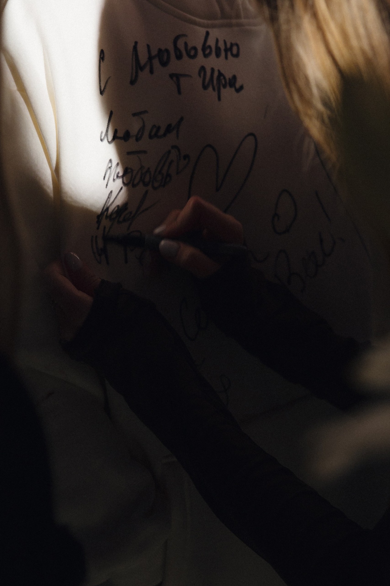 Вечер прошёл весело: насыщенная программа, выездной бар, кавер-группа. Вместо книги пожеланий — кастомные худи с посланиями от гостей. Каждый оставлял свой автограф или фразу на память.
