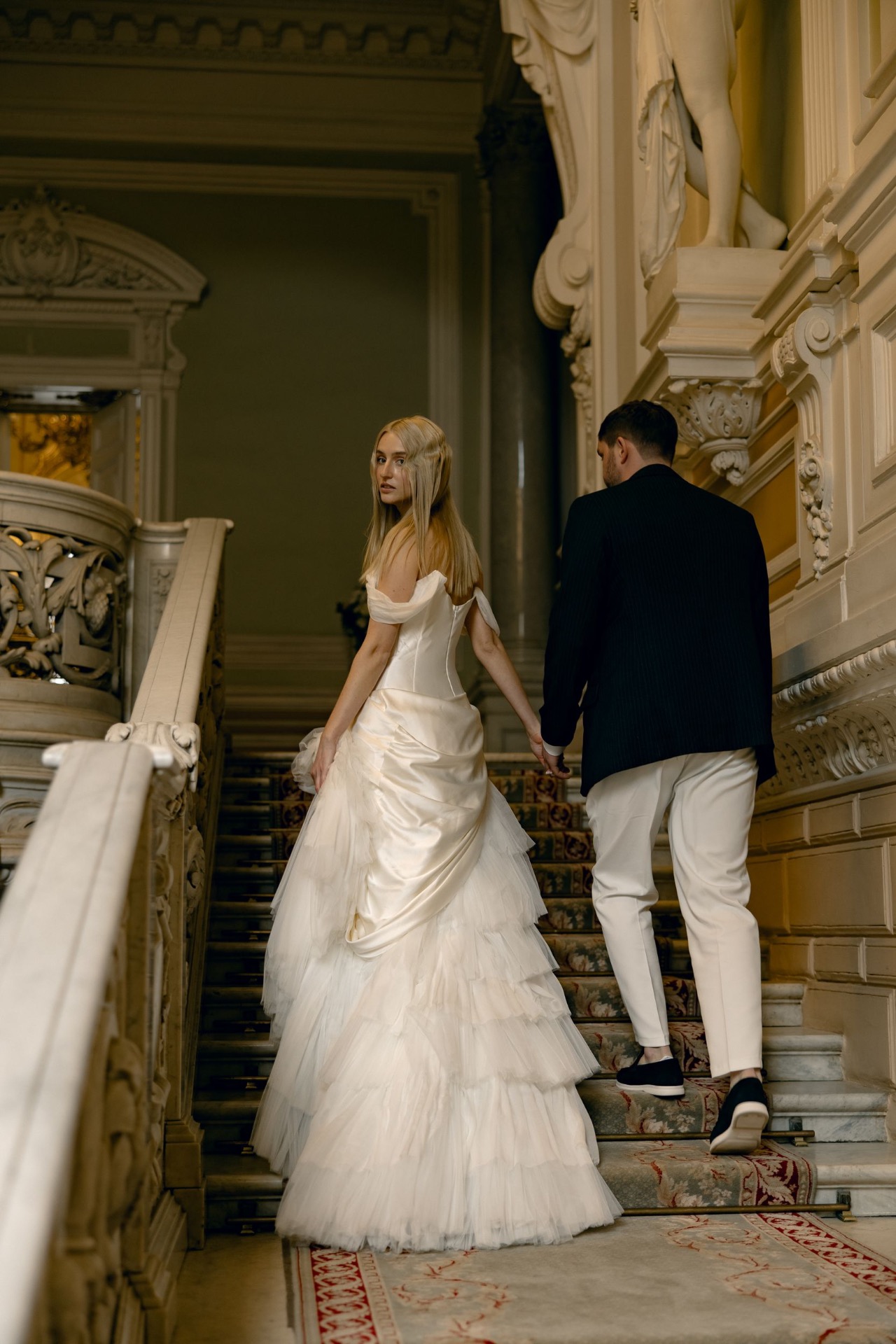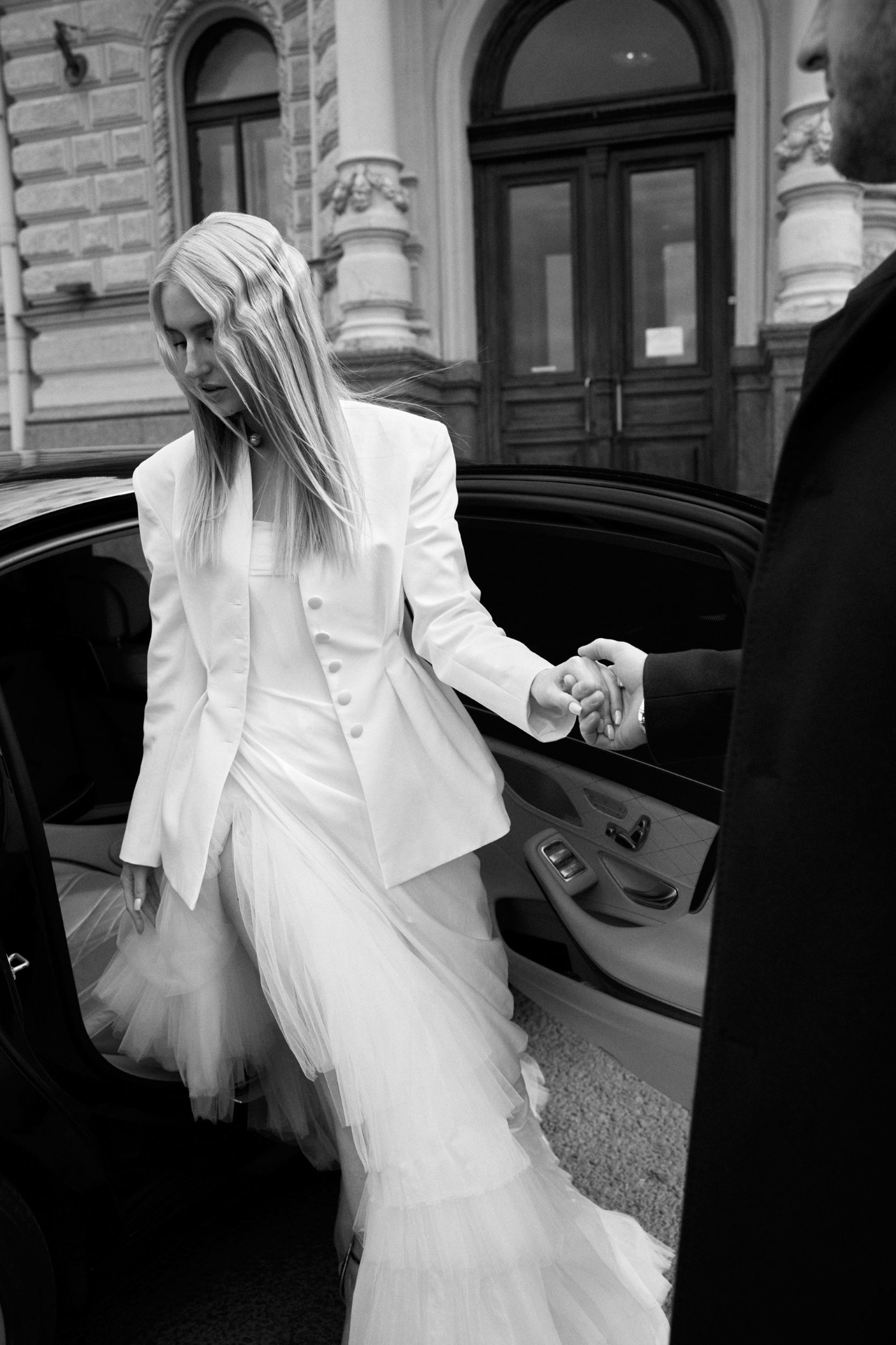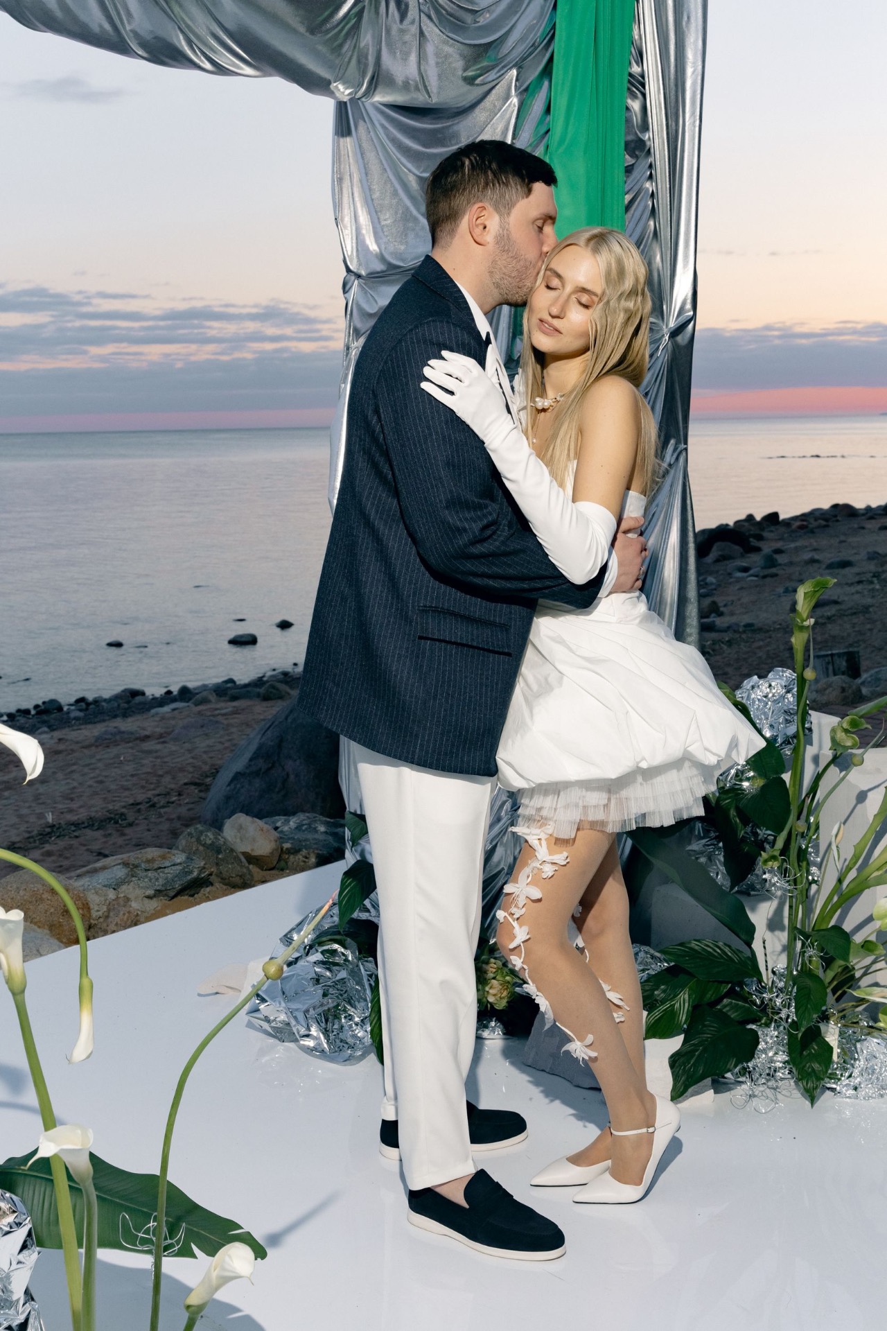 При создании образов пара работала с имидж-стилистом Мариной Кель. В образах жениха и невесты отражалась история любви, где скорость соединяется с романтикой, а драйв — с нежностью.