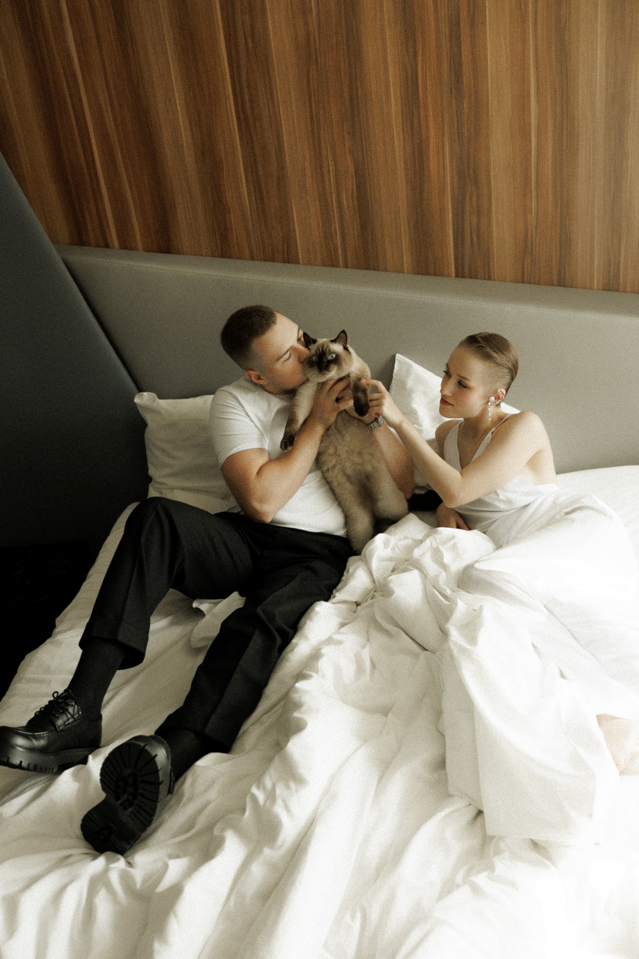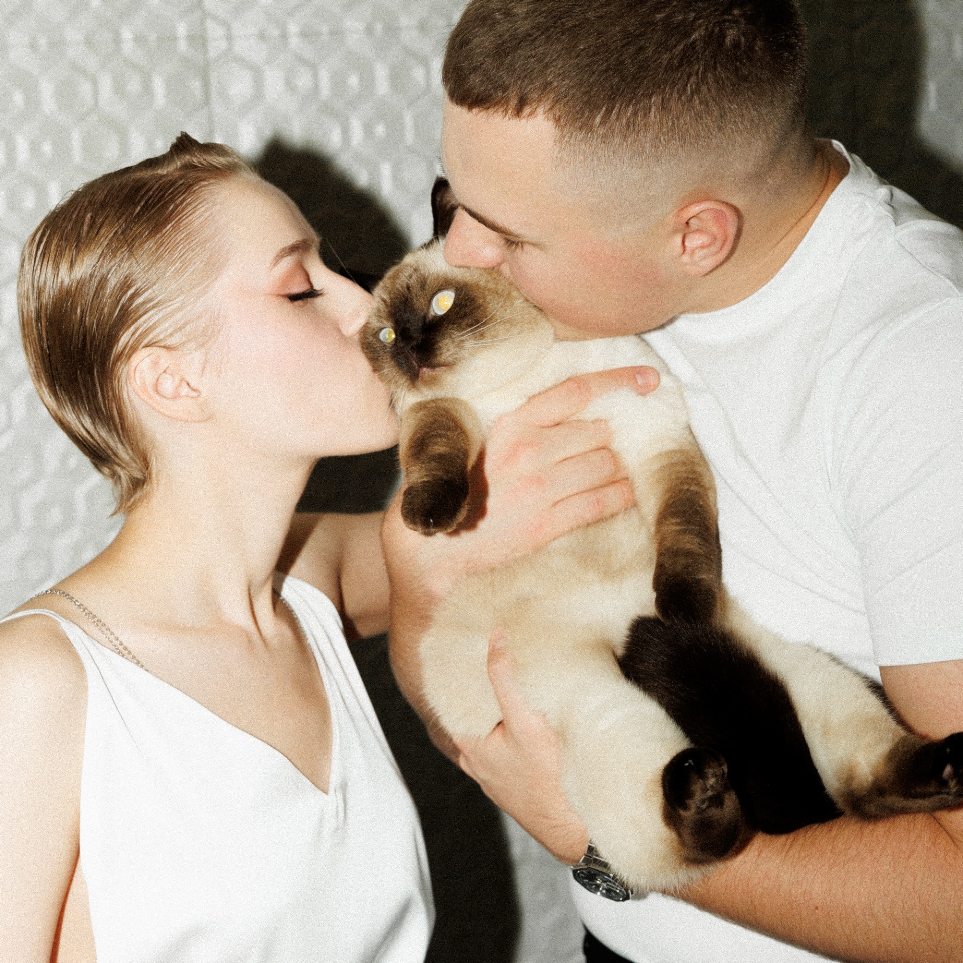 Мы вместе 6 лет, сейчас у нас есть замечательные коты — Симба и Кит-Кат, в которых мы души не чаем. Симбу вы, кстати, увидите на фотографиях из отеля! Фотограф Ваня настоятельно рекомендовал нам их привезти для фото, о чём мы не жалеем ни капли.
