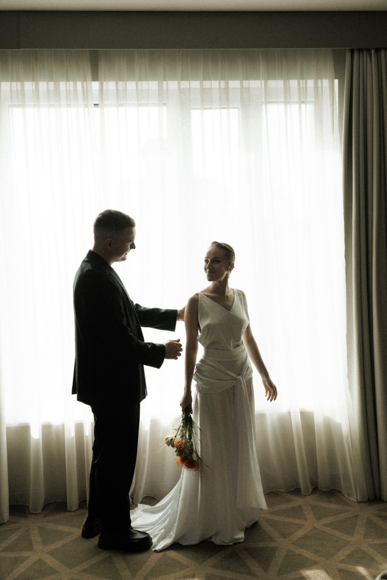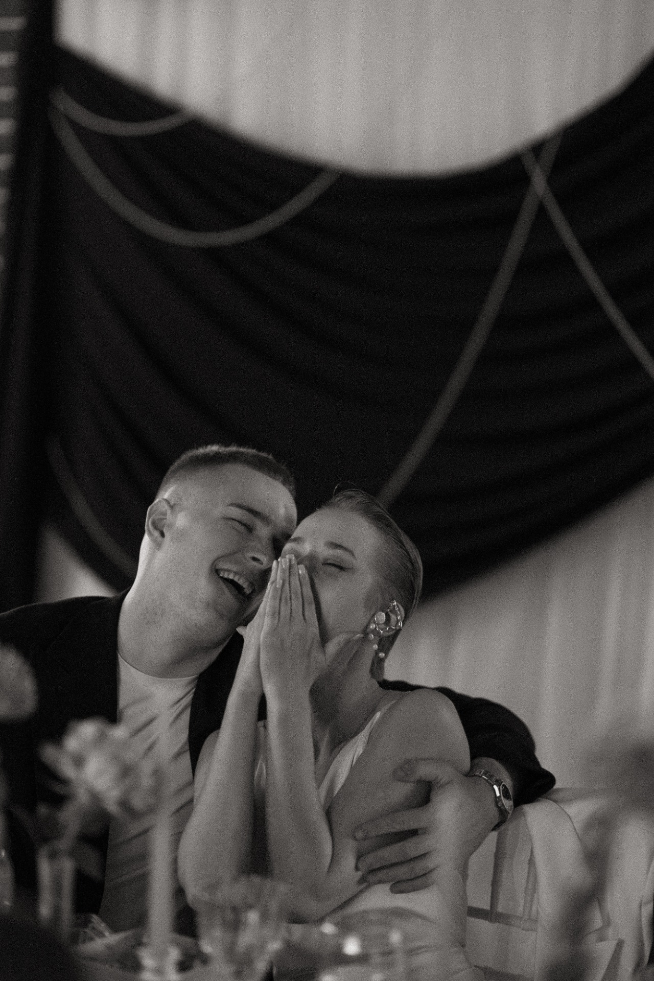 Серёжа сделал мне предложение зимой 2023 года. Это было камерно, как и наша свадьба — только мы вдвоём в домашней обстановке. В тот момент мы делились, как видим совместную жизнь в будущем. Это был тёплый душевный момент, хотя предложения я вообще не ожидала.