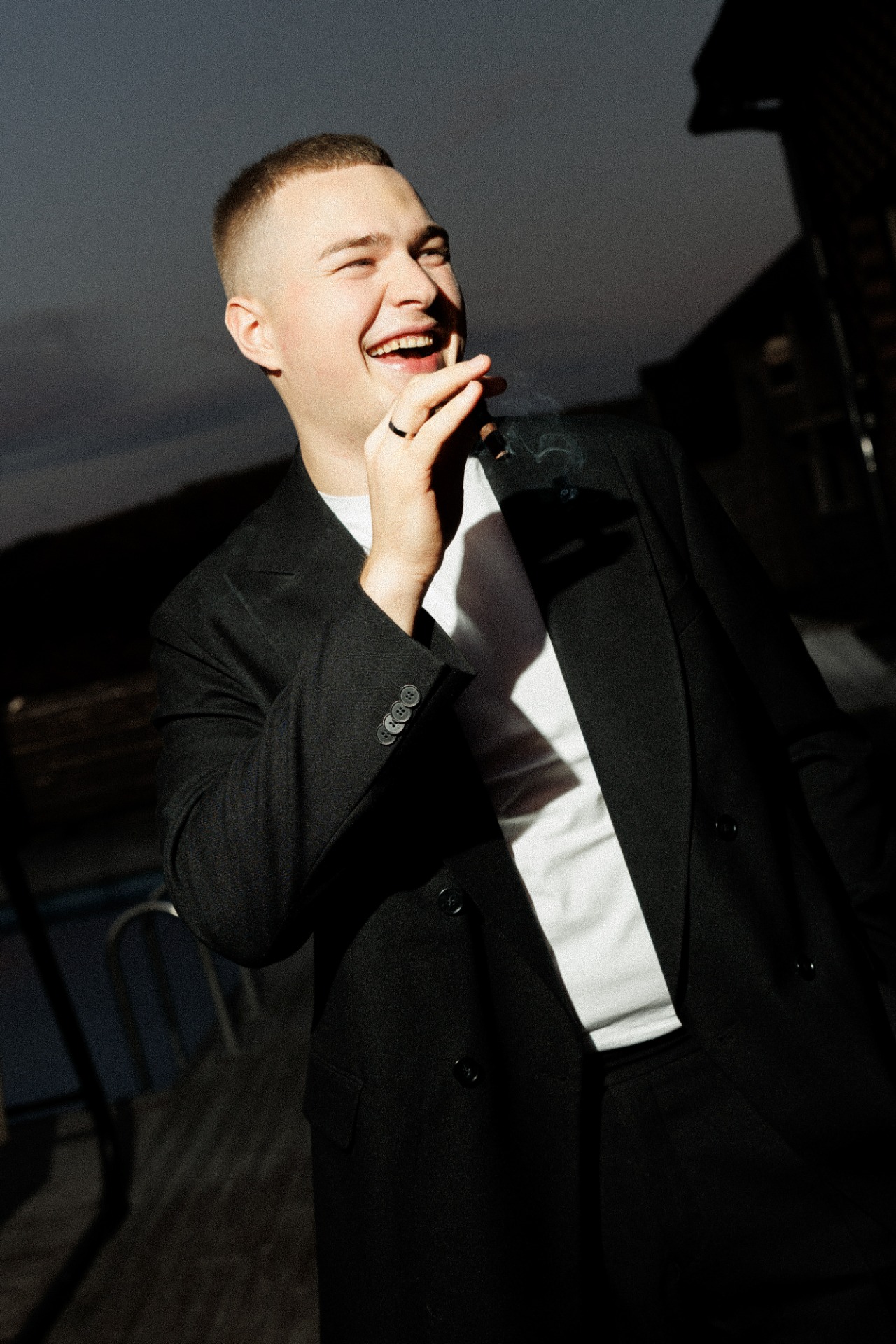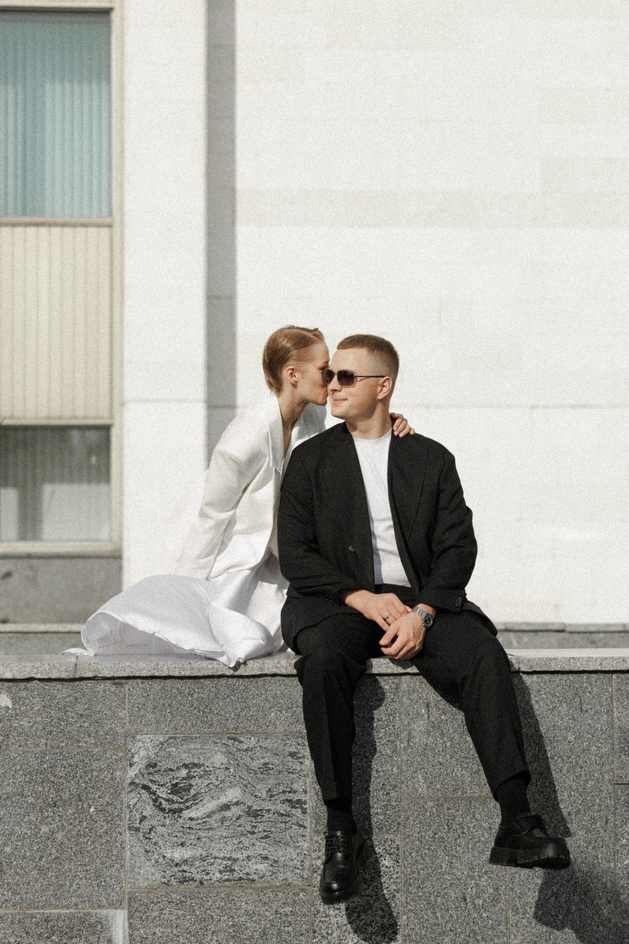 Серёжа хотел двубортный и комфортный оверсайз-костюм, передающий его стиль. За ним мы поехали в Казань, так как увидели классные варианты в одном из роликов в социальной сети. С первой примерки Серёжа оказался в восторге от костюма. Также мы решили отойти от классического варианта с рубашкой и выбрали для него комфортную белую футболку.