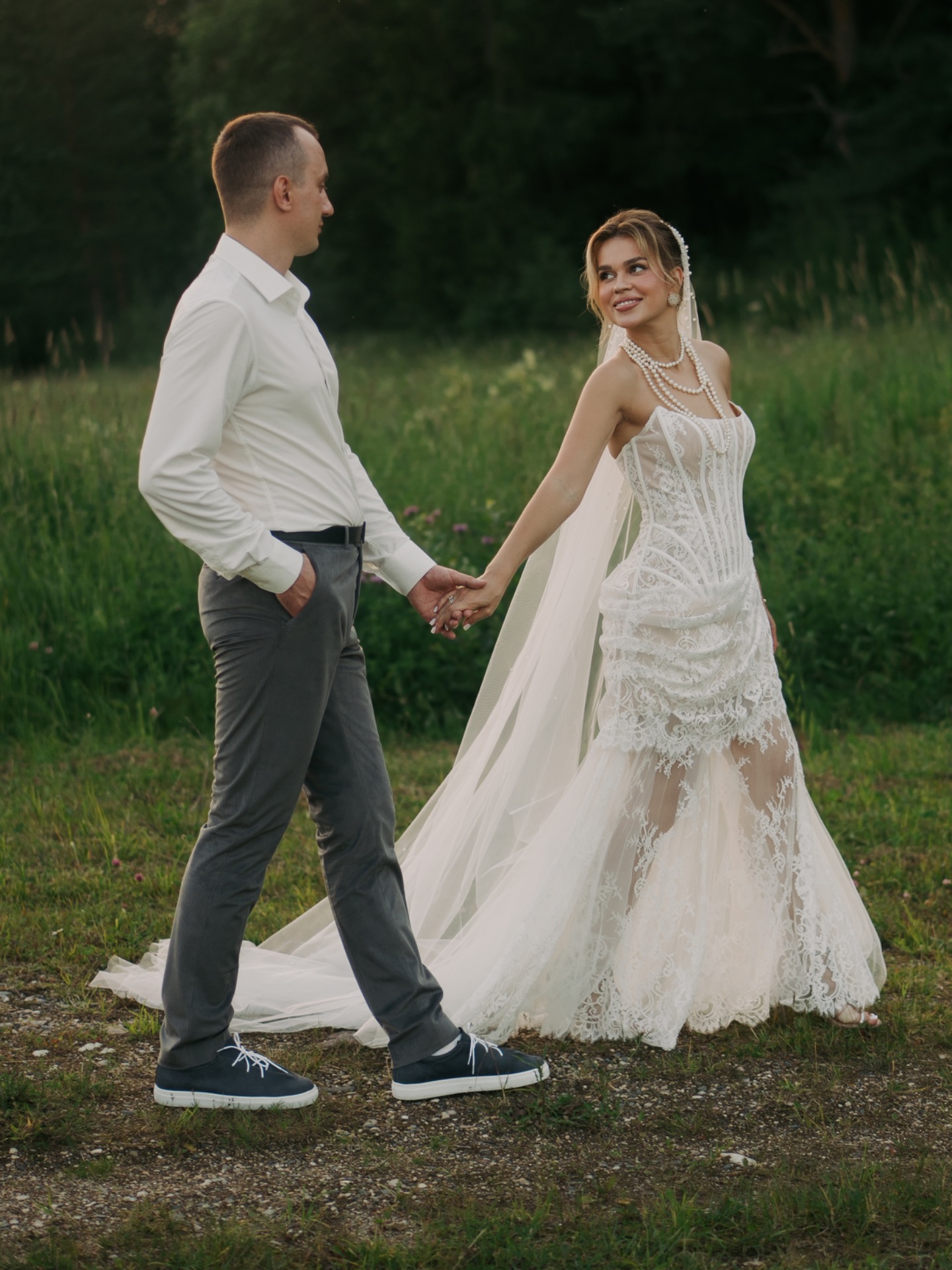 Мы начали готовиться в начале зимы 2024 года, а 12 июля 2025 года прошла наша шикарная свадьба. Всей основной подготовкой занимались наши организаторы, а я — подбором платья и костюма для жениха. Я полностью доверилась выбранному агентству, и это было очень правильным решением!