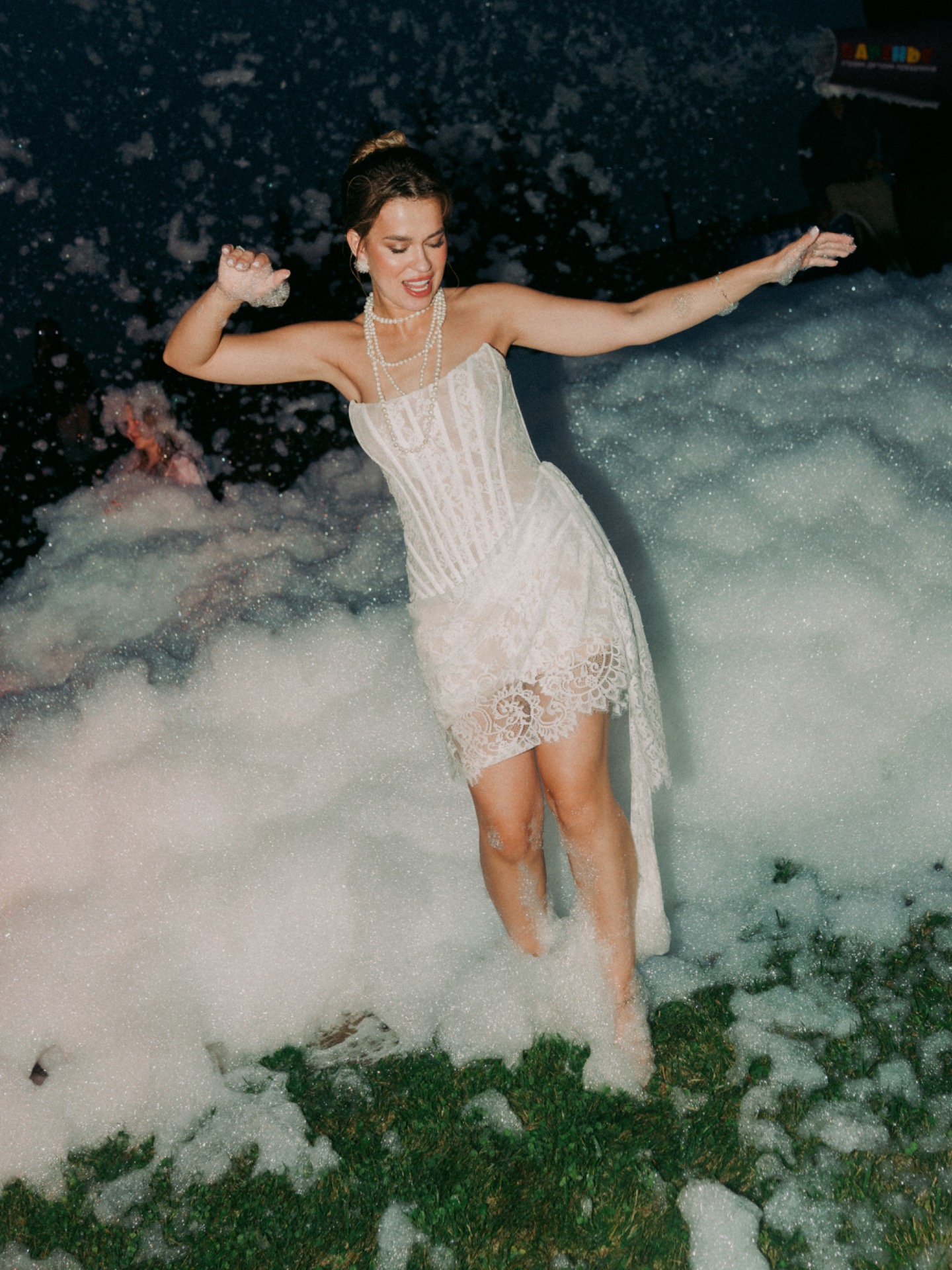 Ближе к завершению нашего праздника мы запустили салют и накормили гостей мороженым. А вишенкой на торте нашего праздника стала пенная вечеринка.