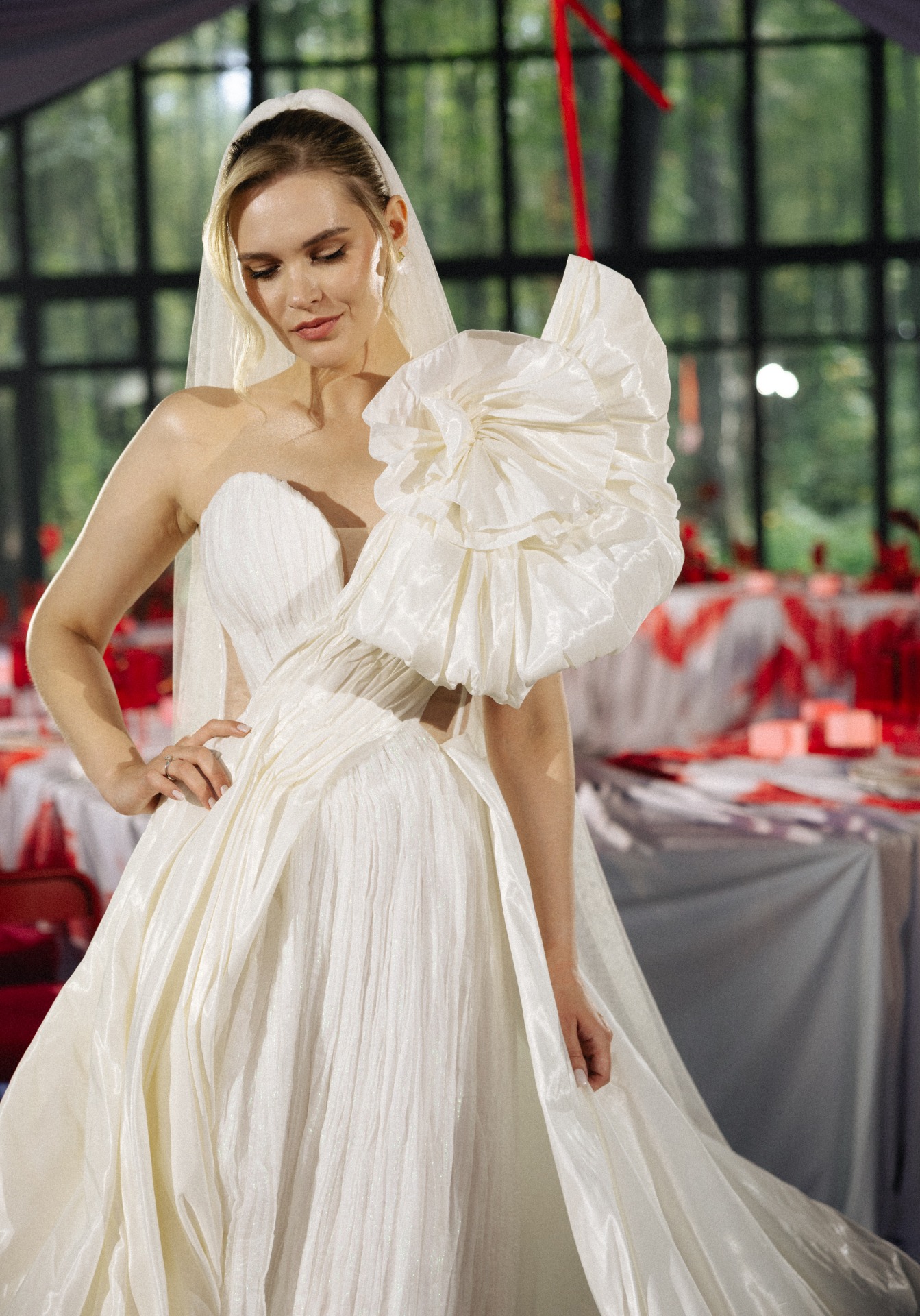 Со вторым платьем всё оказалось сложнее — его поиски заняли гораздо больше времени. Я объездила десятки салонов, но ни одно платье не вызывало того самого чувства. Всё было мимо. Тогда я зашла в подборку в трендбуке Weddywood, пролистала варианты и почти сразу нашла салон Wedding Atelier и платье, которое мне сразу откликнулось. Я поехала туда, примерила его и сразу оформила заказ.