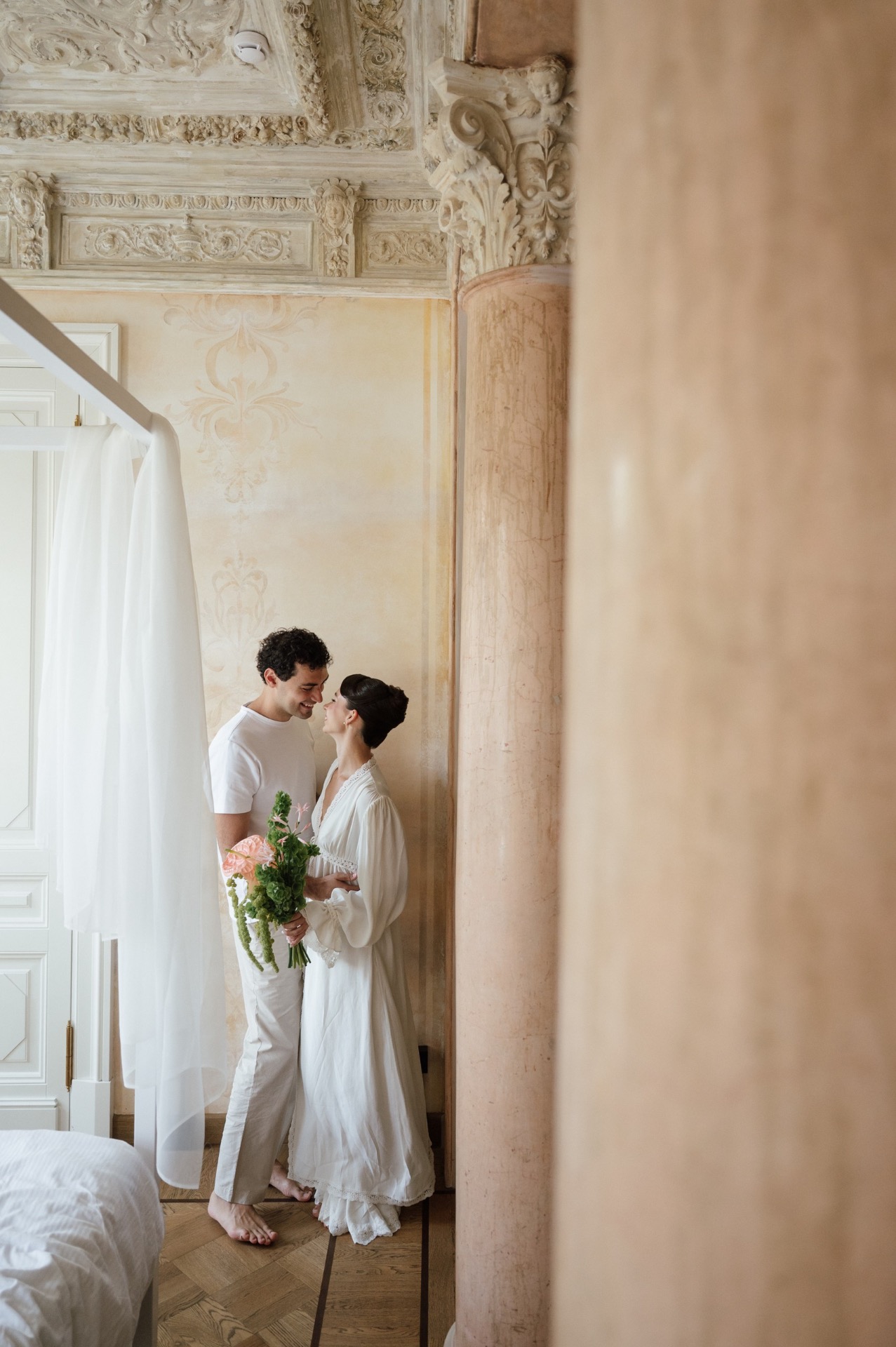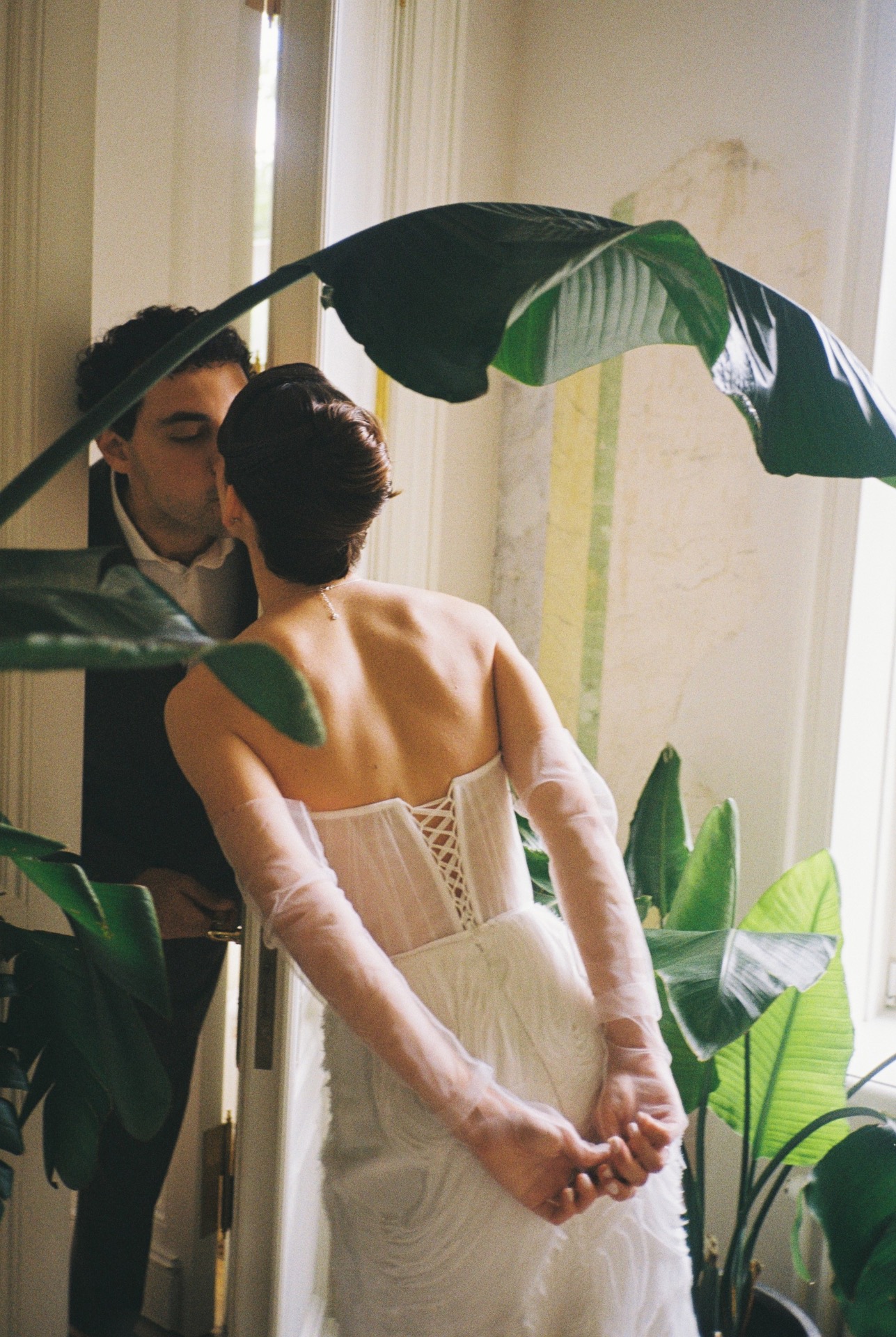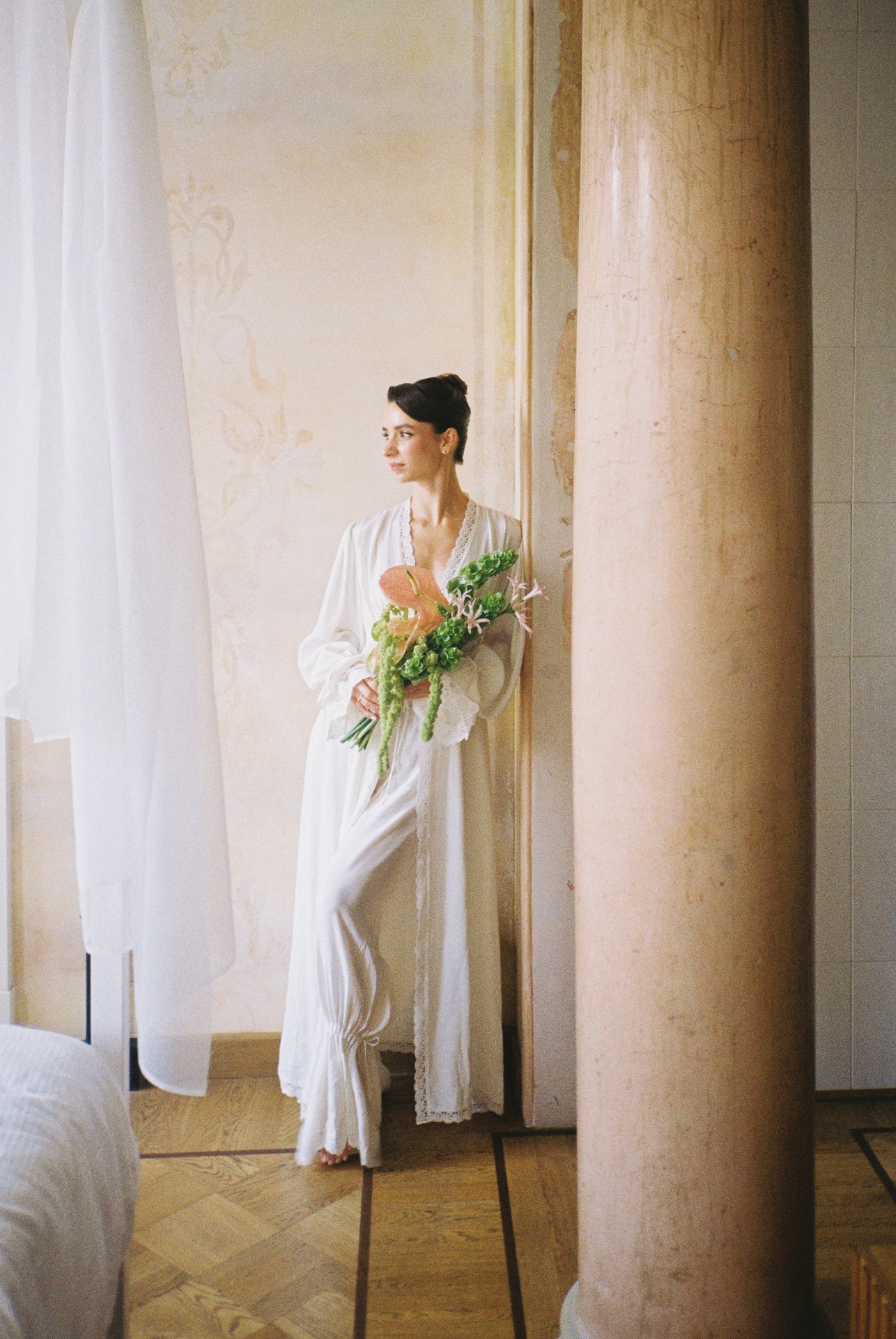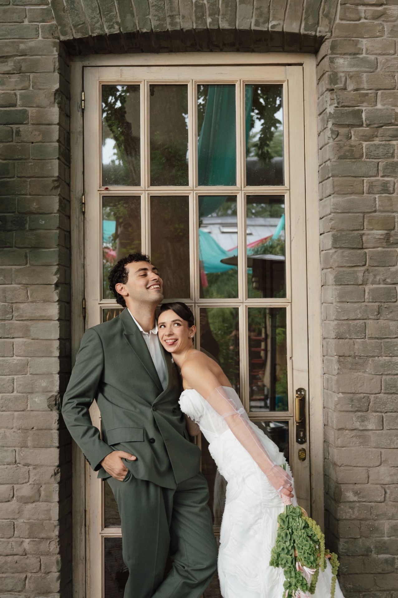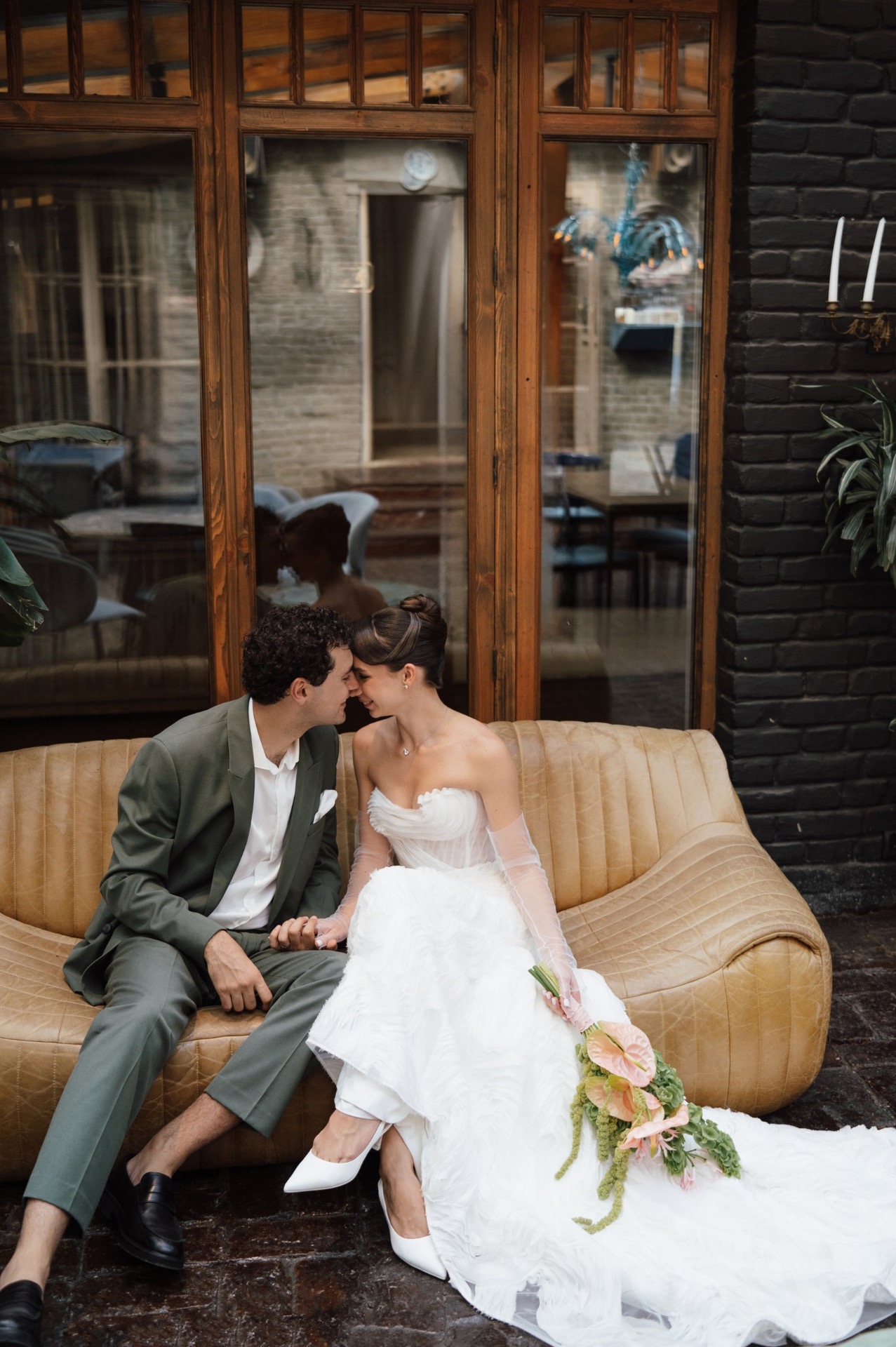 С костюмом жениха история сложилась похожим образом. Мы наткнулись на него случайно, решили примерить и сразу почувствовали: он наш. Он был зелёного цвета — свежий, стильный, идеально вписывающийся в цветовую палитру свадьбы.
