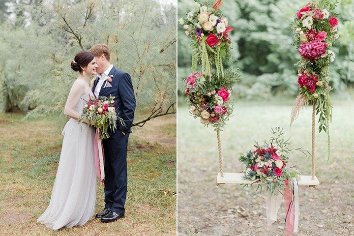 Особое внимание в распорядке свадебного дня мы уделили прогулке, чтобы без лишней суеты сделать качественные фотографии. Прогулка была главным и центральным звеном в свадебном дне, поэтому ее организация стала самой сложной, но увлекательной частью при подготовке к свадьбе. Вместе с родителями мы ездили по паркам и садам Москвы, чтобы выбрать лучшее место для фотосессии и проложить живописный маршрут. Выбор был сделан в пользу Ботанического сада им. Цицина. Чтобы прогулка стала еще интереснее, мы решили устроить две фотозоны: одну с цветочными качелями, а другую с декорированной цветами лодкой.