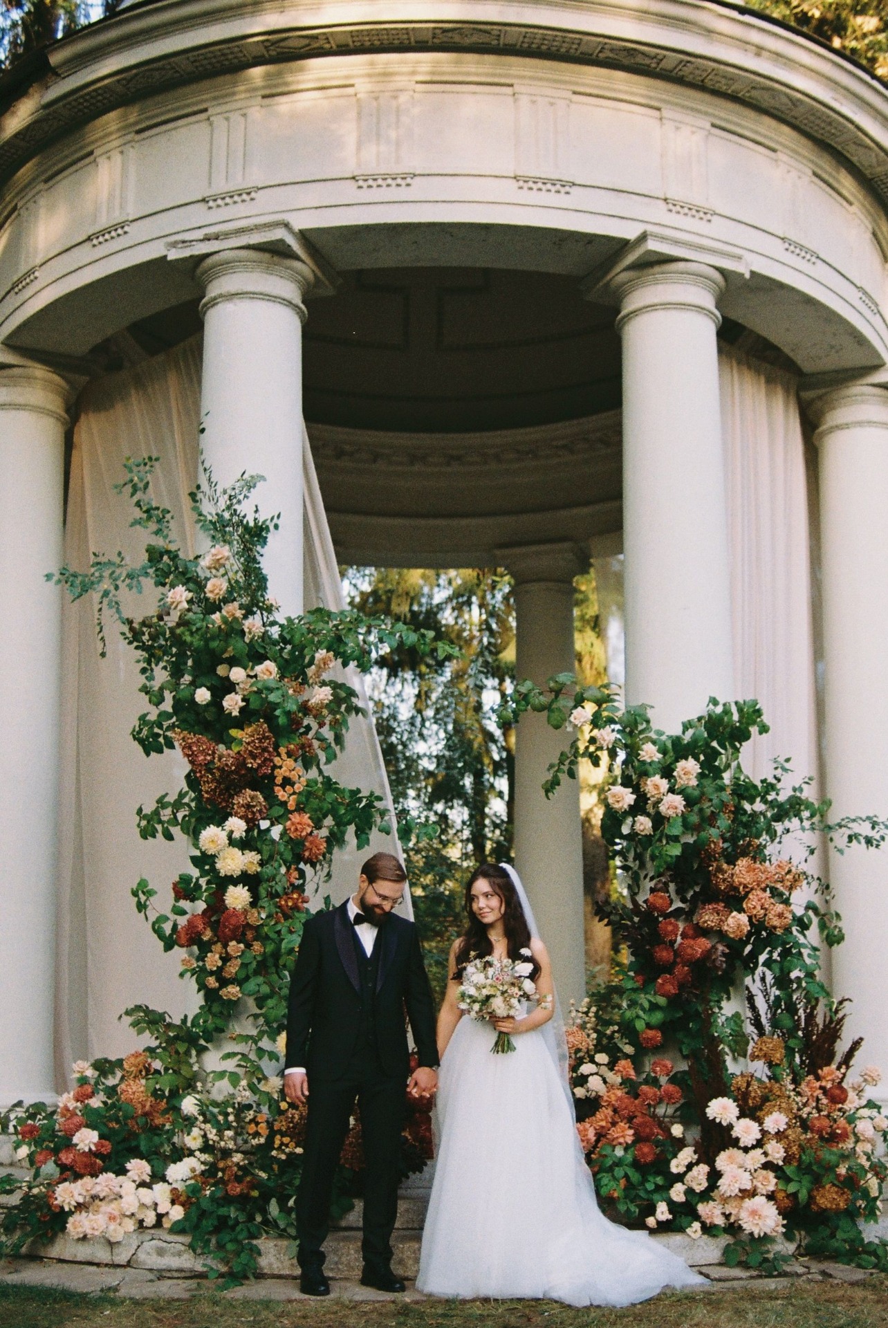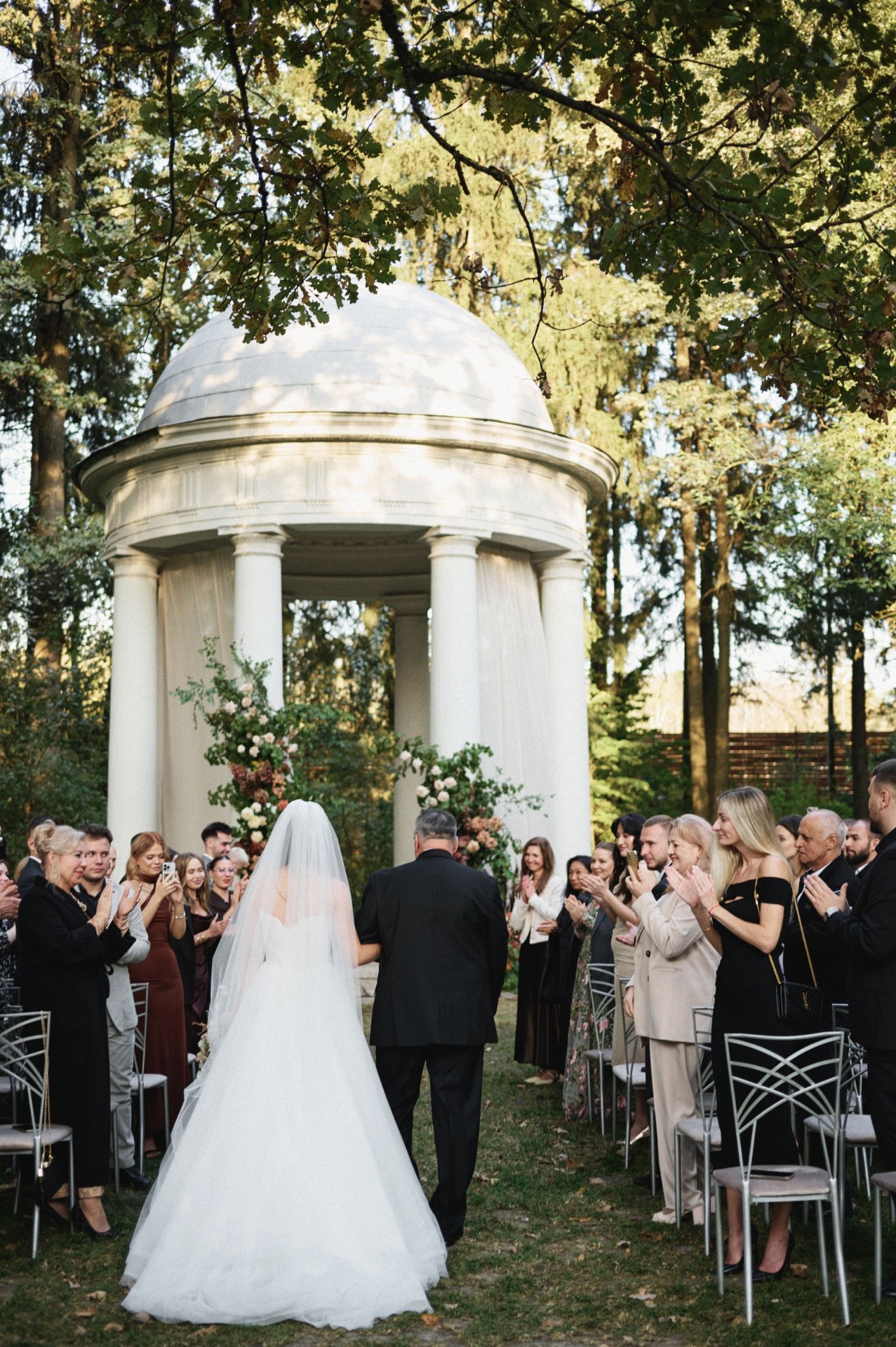 Свадьбу на 70 гостей мы запланировали на конец сентября. Организаторы подобрали для нас загородную локацию, предложили декор в тёплых осенних оттенках с очень красивой флористикой и множеством тёплых огоньков.