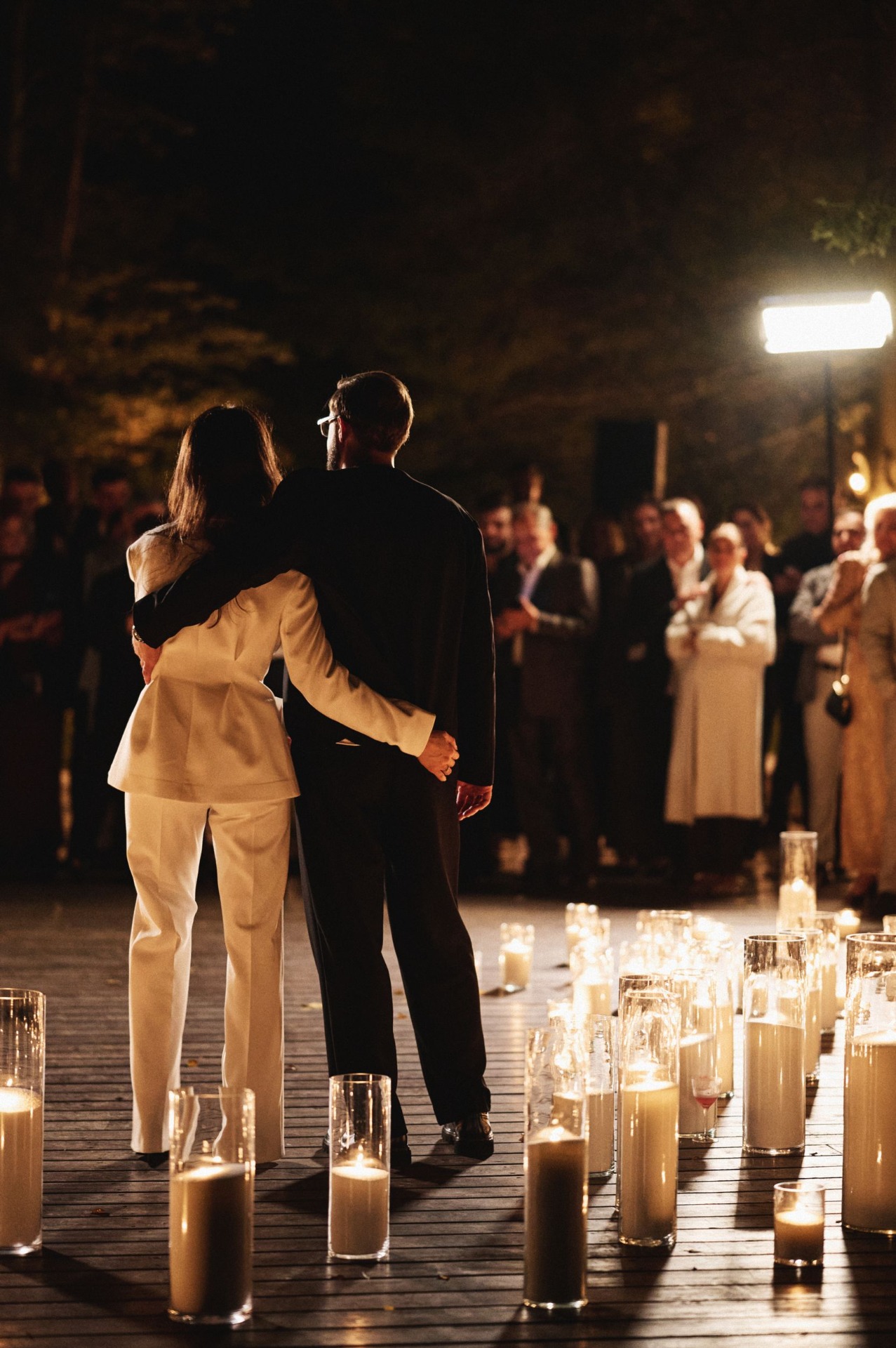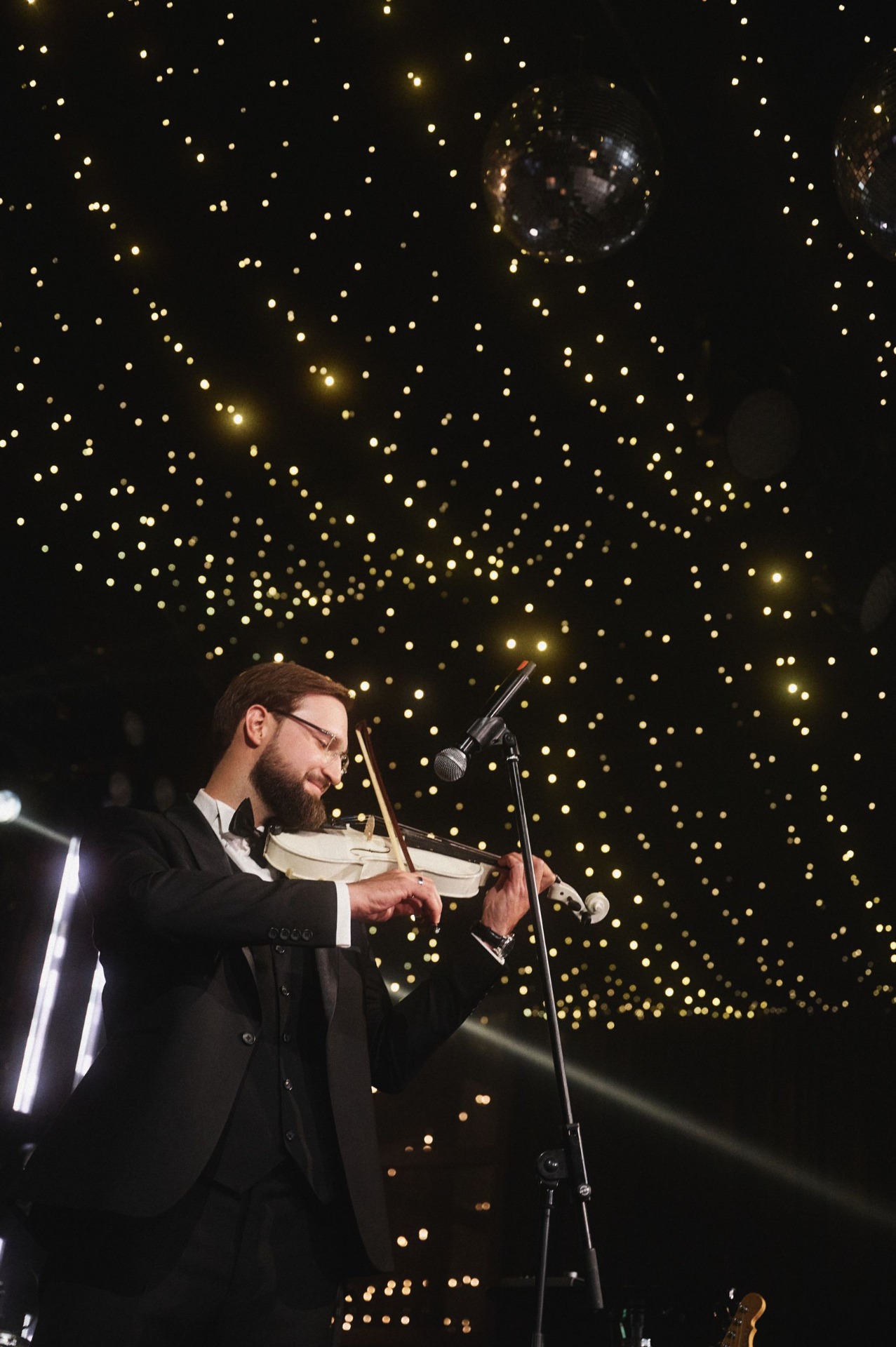 Сначала была очень трогательная церемония, где мы сказали друг другу тёплые слова. Потом мы отправились в зал — на нашу панорамную веранду. Там нас ждал ужин, выступление кавер-группы и подарок от гостей — выступление Эльбруса Джанмирзоева. А ещё Максим подготовил для меня сюрприз и впервые в жизни сыграл на скрипке под аккомпанемент брата на клавишах.