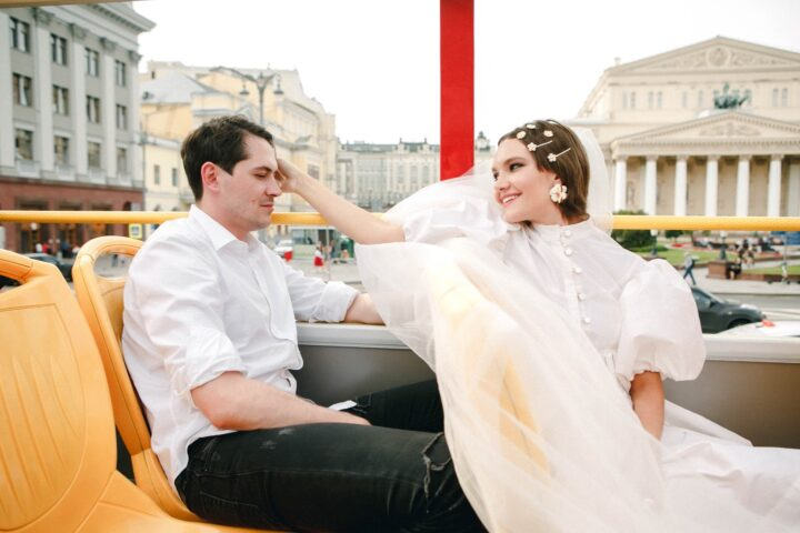 Поехать в стильный бар пить коктейли. Устроить фотосессию на барной стойке. Прокатиться по Москве на экскурсионном автобусе с открытой крышей, ловить улетающую фату и шокировать туристов своими дерзкими образами. Быть разными: смешными или серьезными, роскошными или простыми, страстными или романтичными. Главное – быть собой!