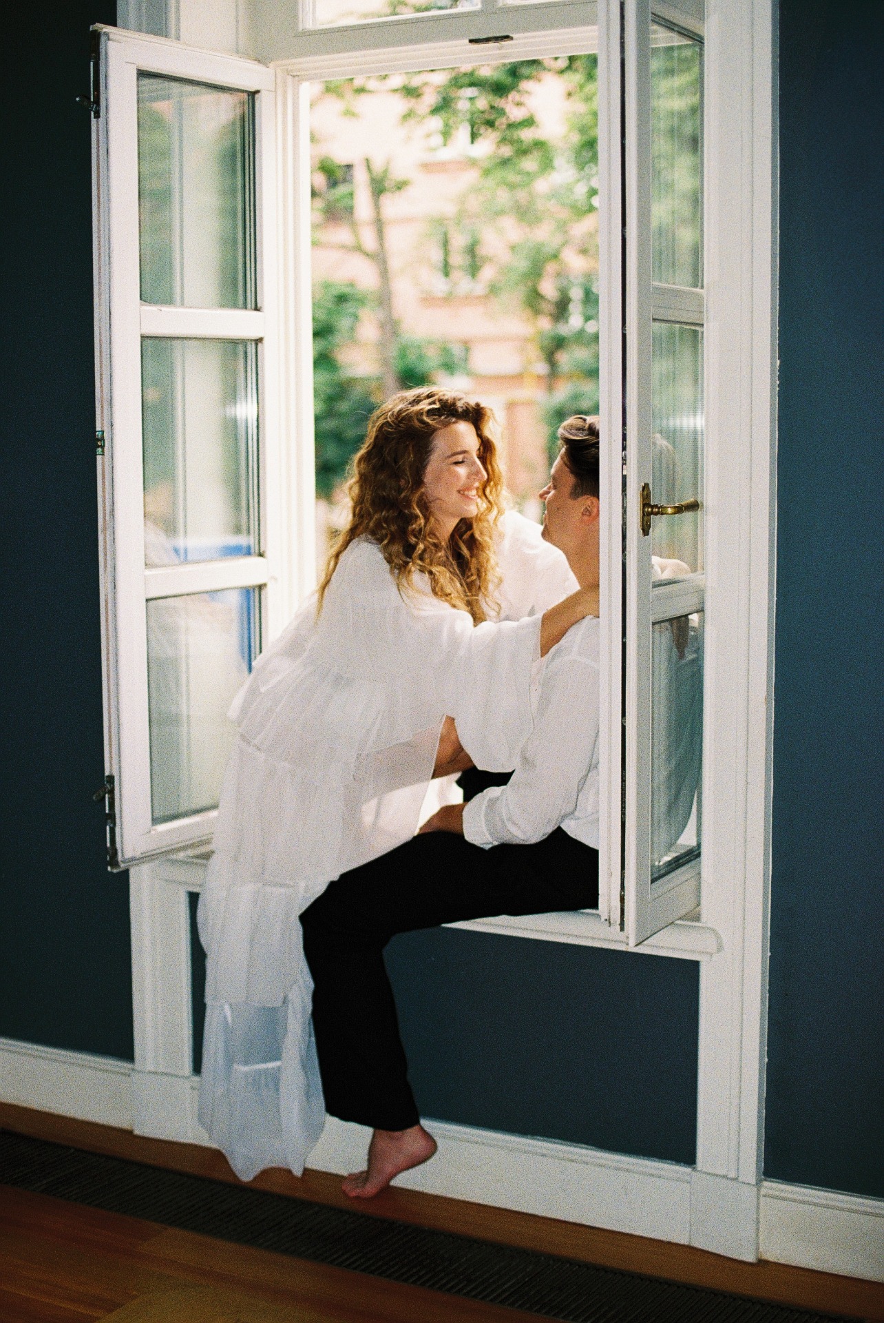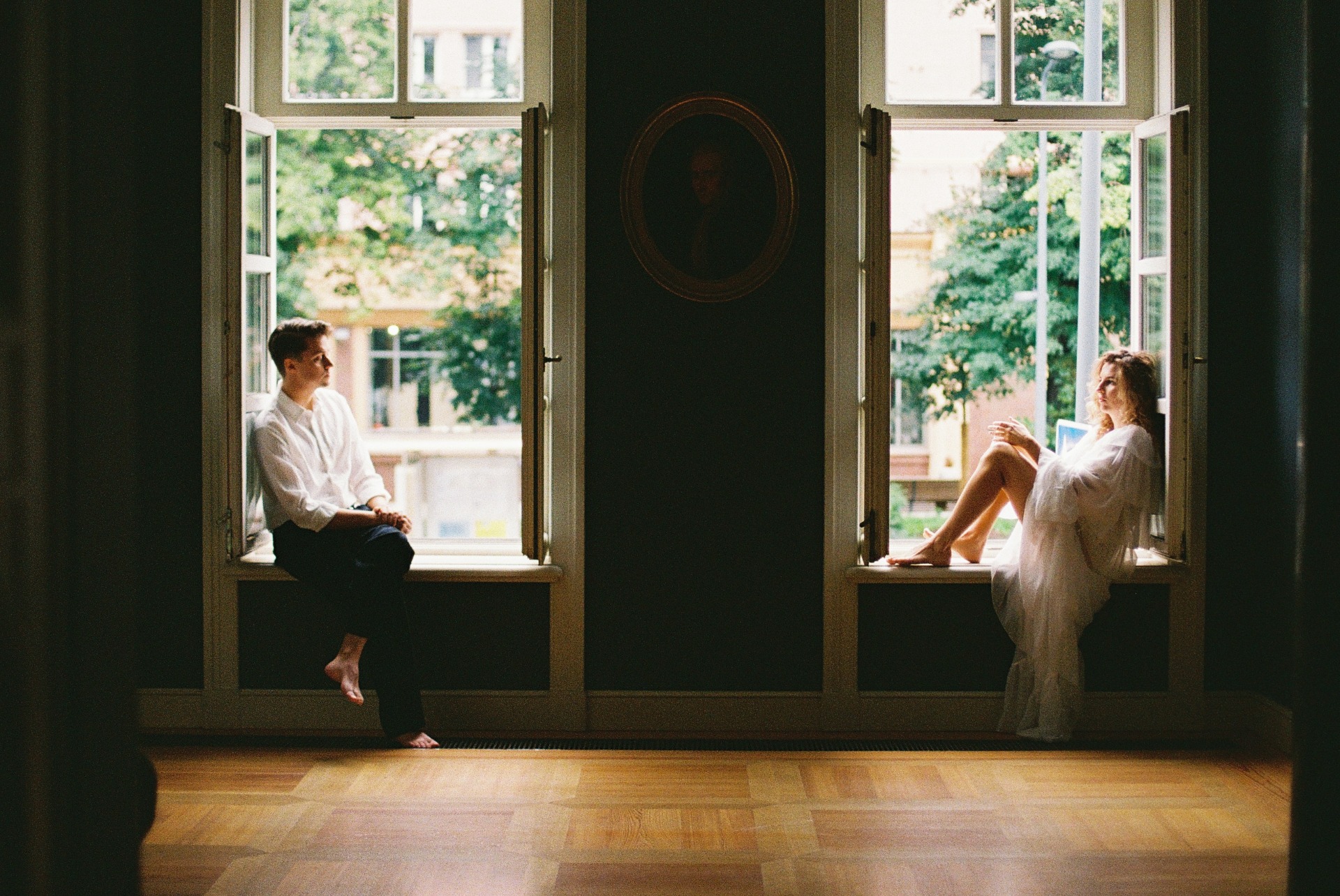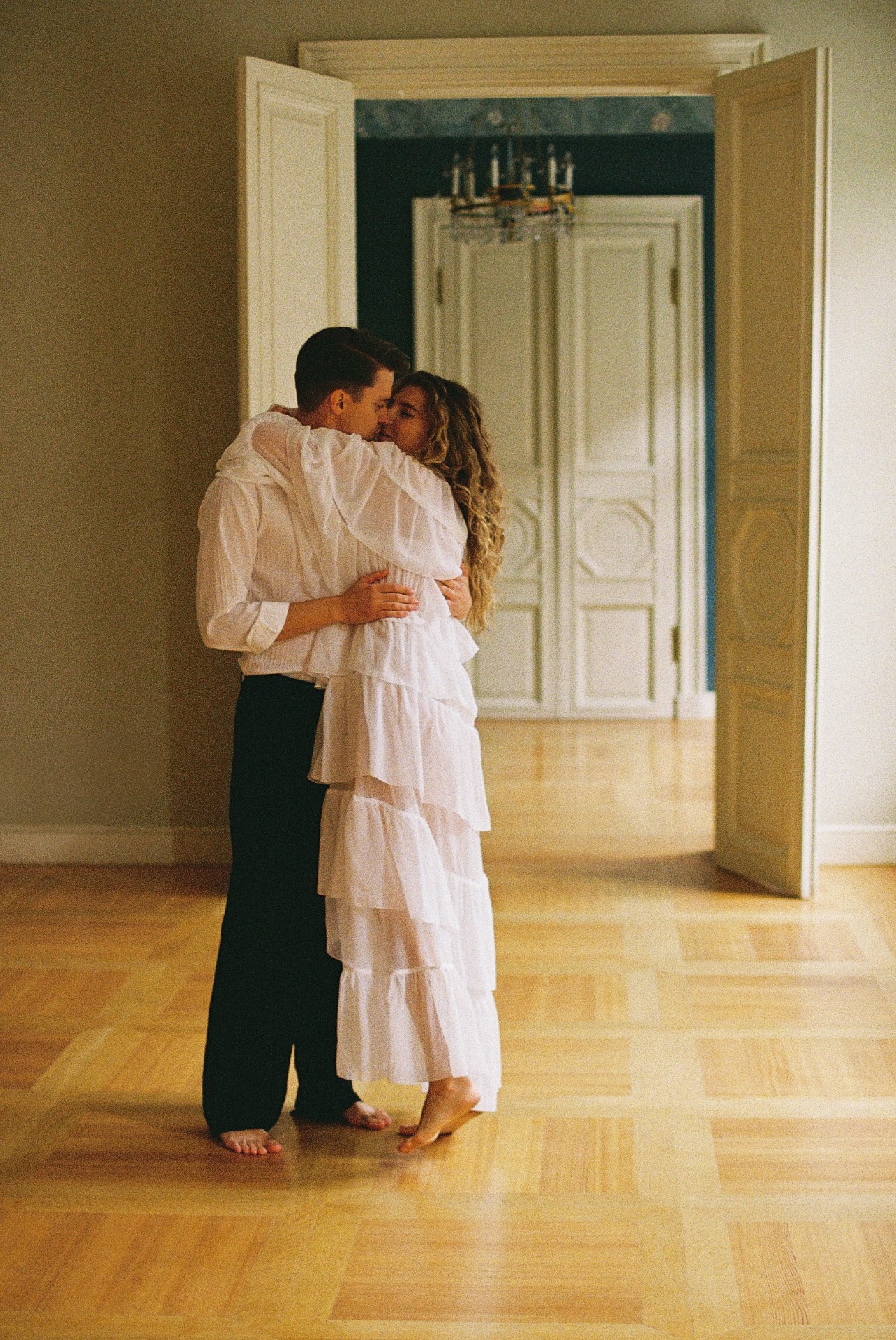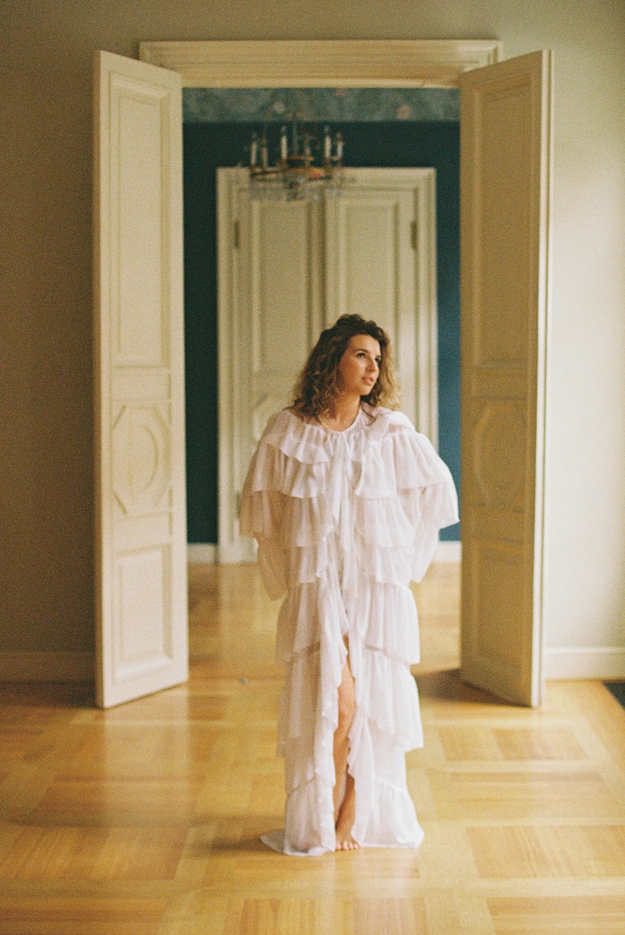 В качестве локации мы выбрали усадьбу Муравьёвых-Апостолов. Светлая геометрия залов, графичные коридоры, мягкие тени нам очень приглянулись, а интересная история этого места добавила ему ещё больше шарма в наших глазах.