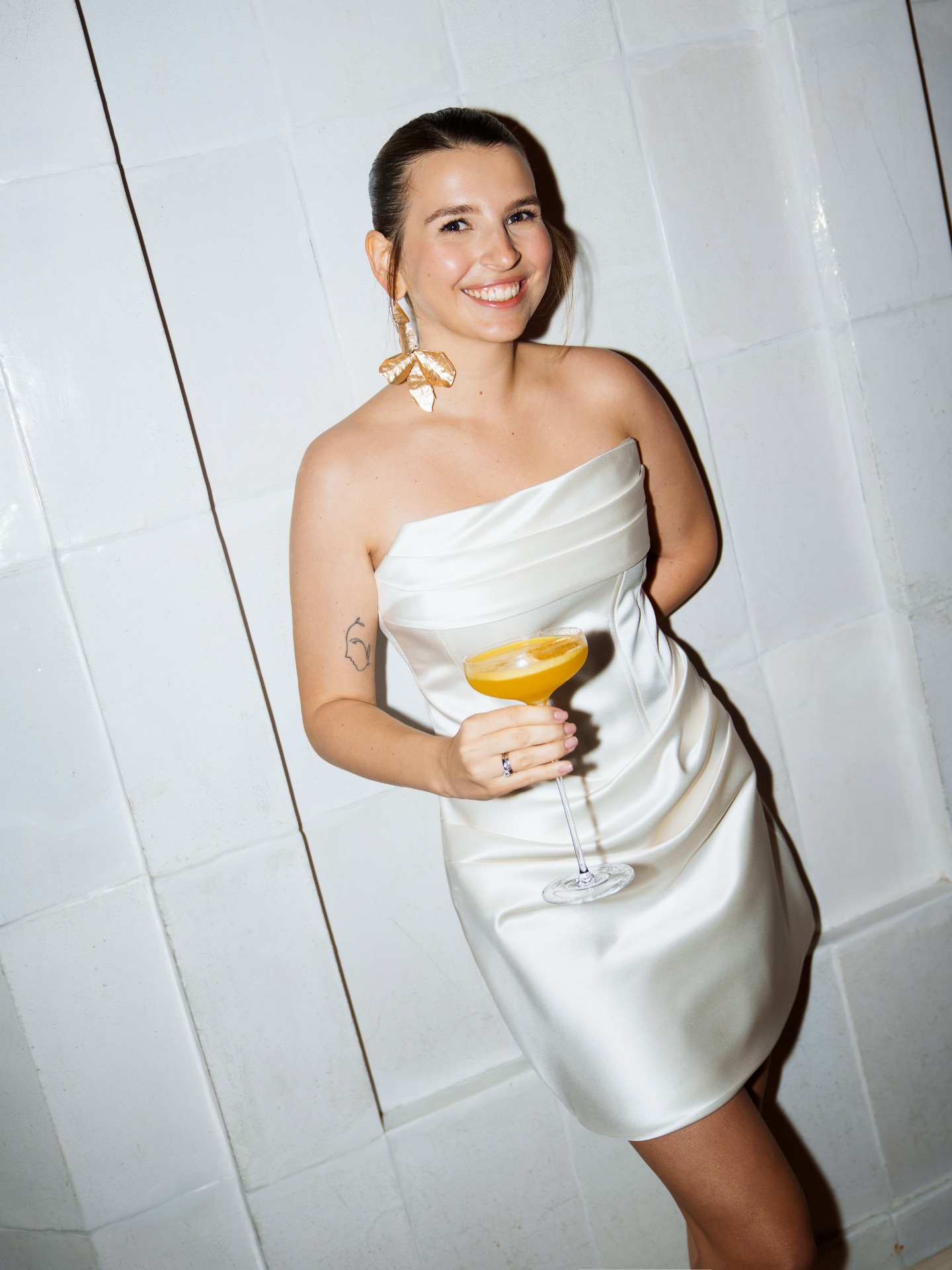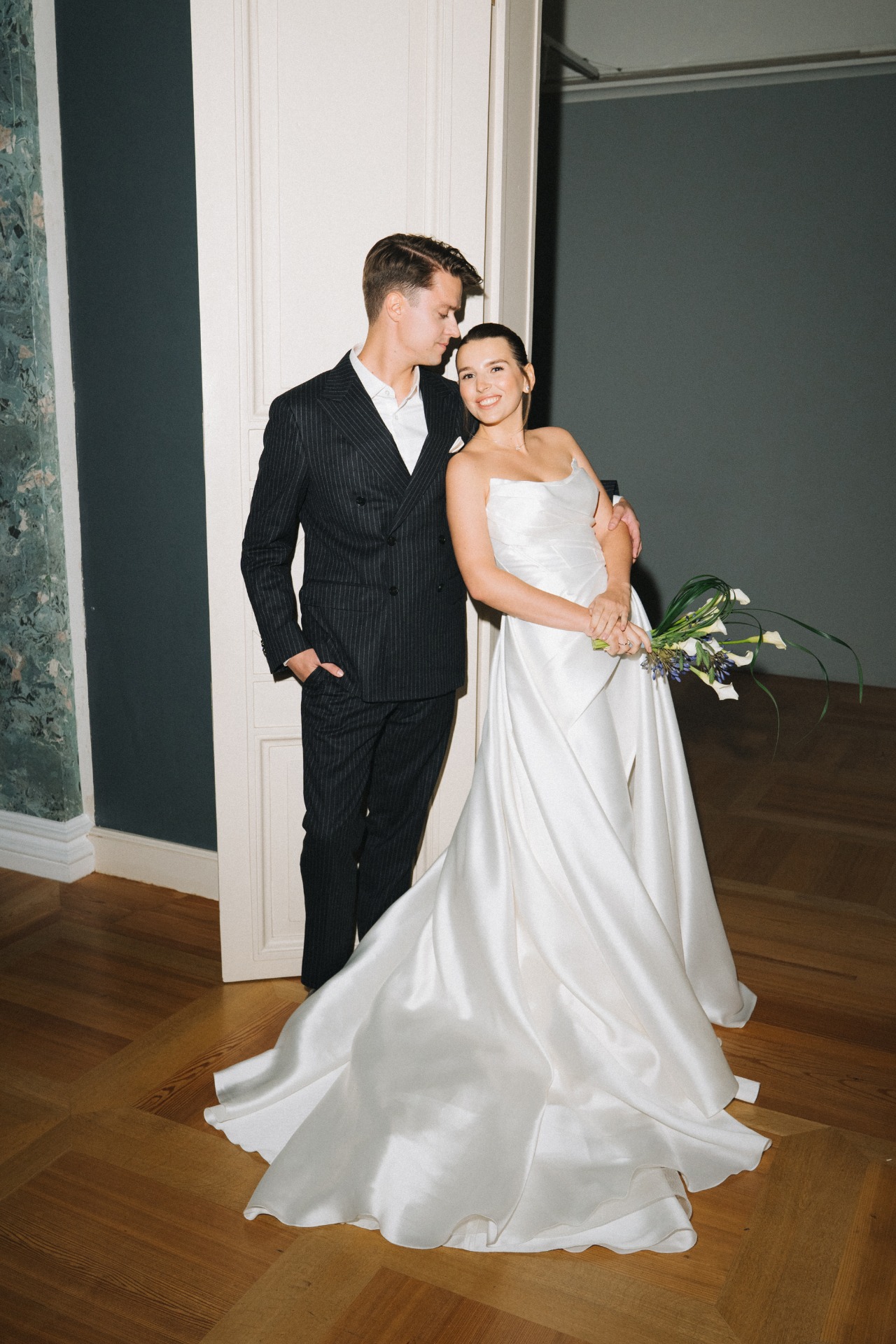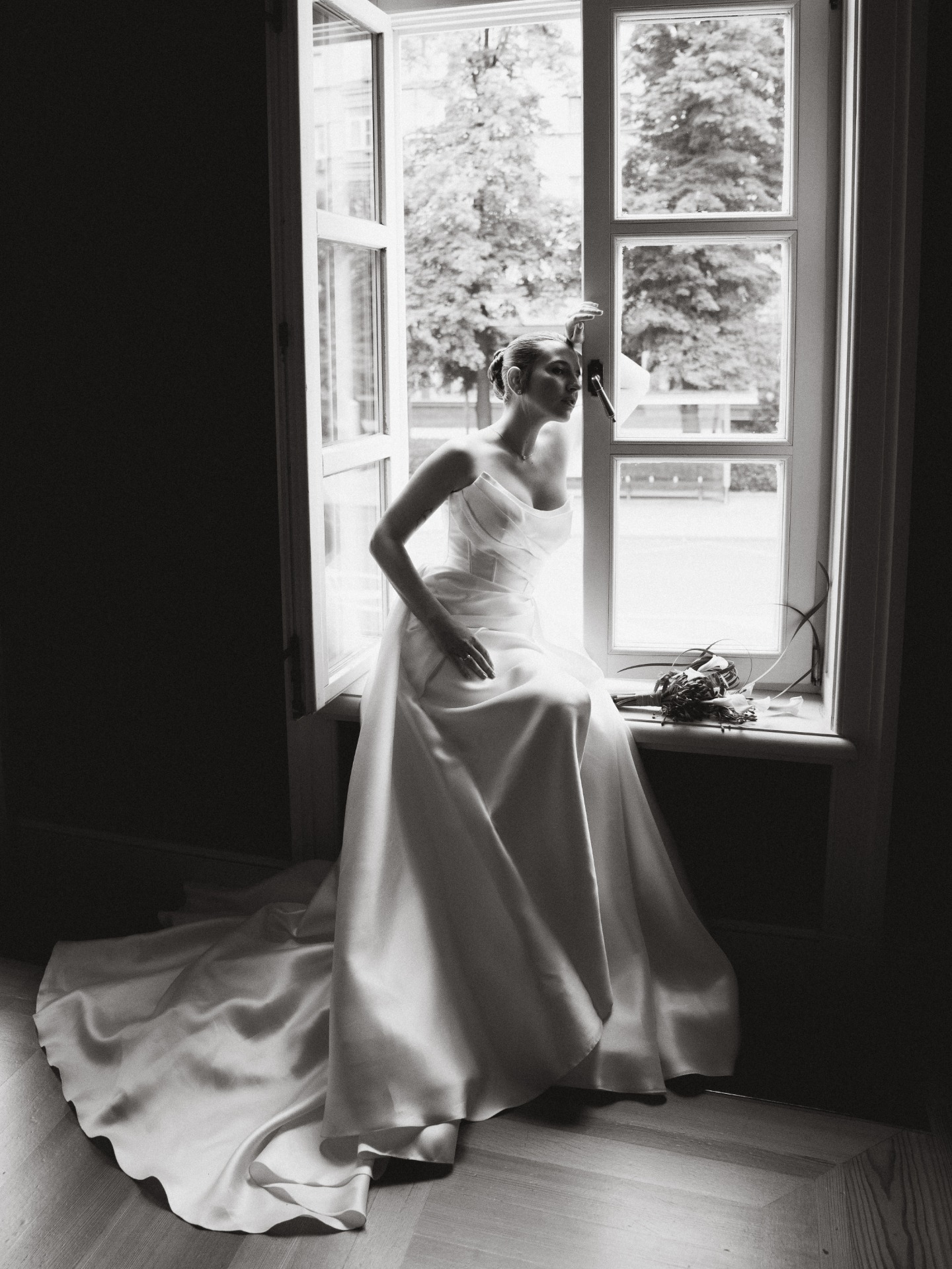 Я выбрала для себя платье из плотного атласа: чистая линия лифа, мягкая драпировка, идеальная посадка и ощущение лёгкости в движении.