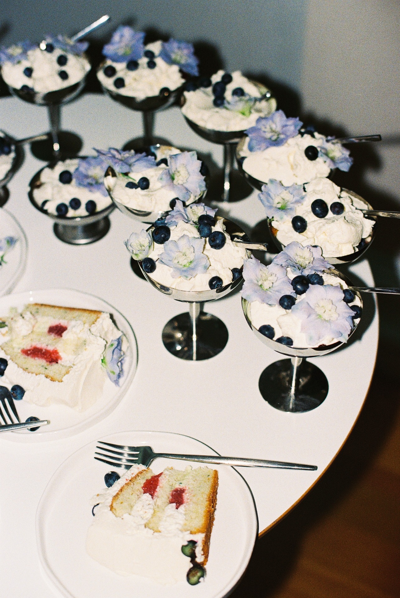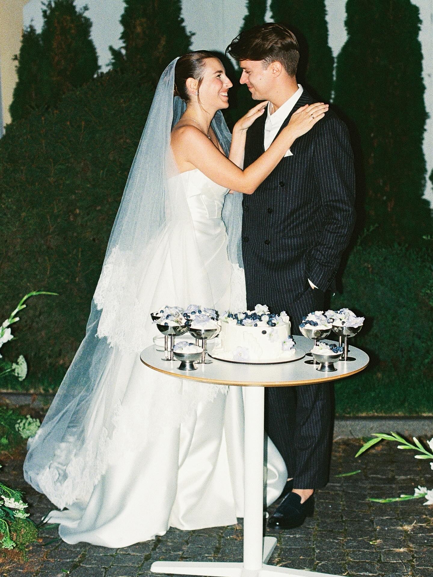 Торт мы выбрали с ягодами и голубыми цветами в эстетике 60-х, Франсуазы Арди и лёгкой романтики французских вечеров.
