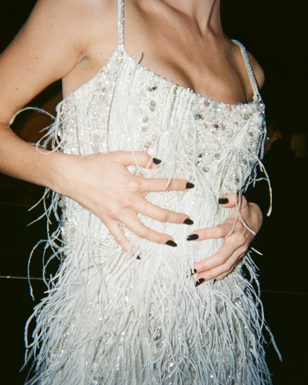 Даже если ткань платья простая и лаконичная, бахрома делает образ более живым и интересным и идеально подходит для afterparty.