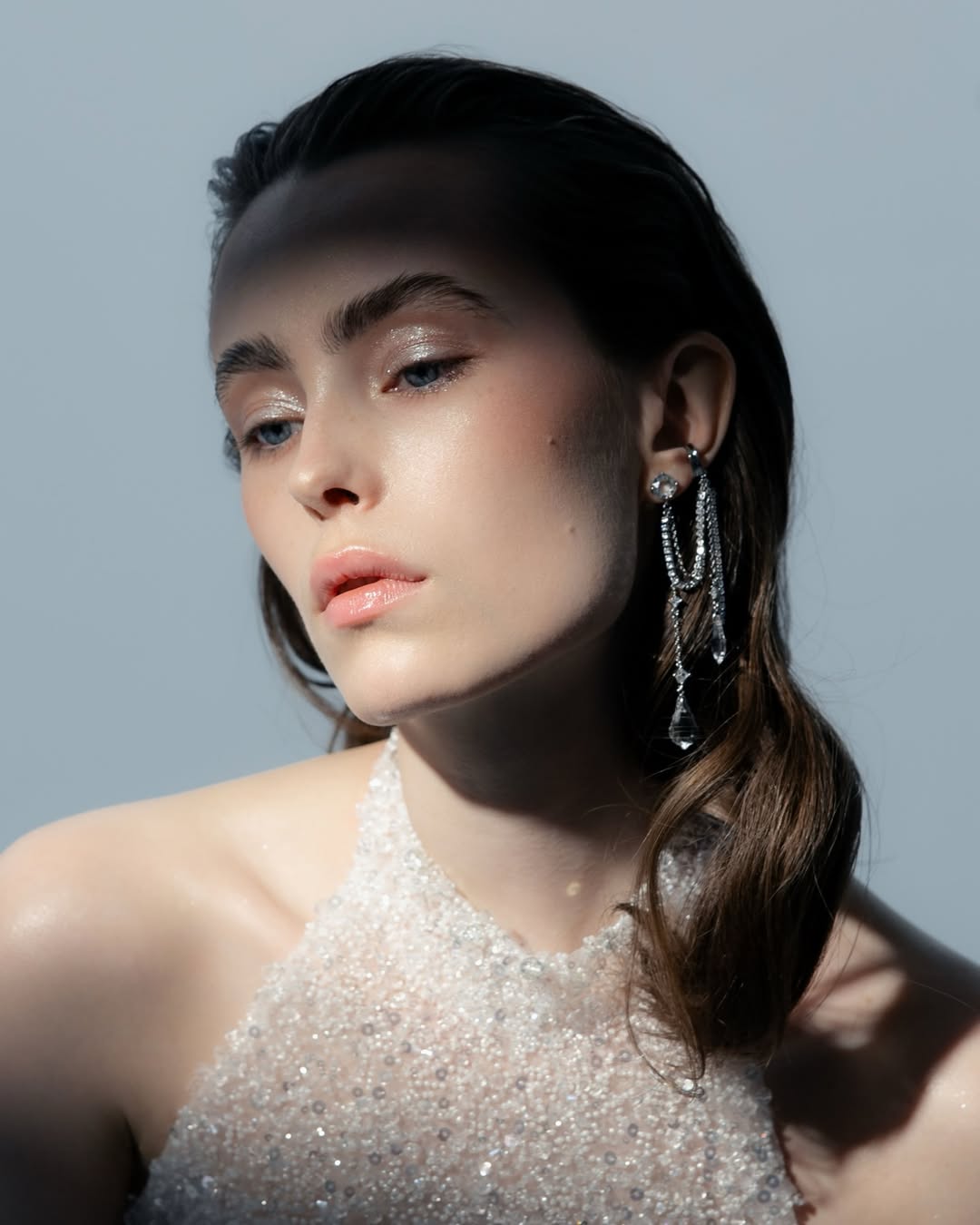 Зимняя свадьба всегда ассоциируется с красивым сиянием и свечением. Отразить это можно как в сияющем макияже, где преобладают влажные текстуры и хайлайтер, так и в деталях платья, обуви и аксессуарах.