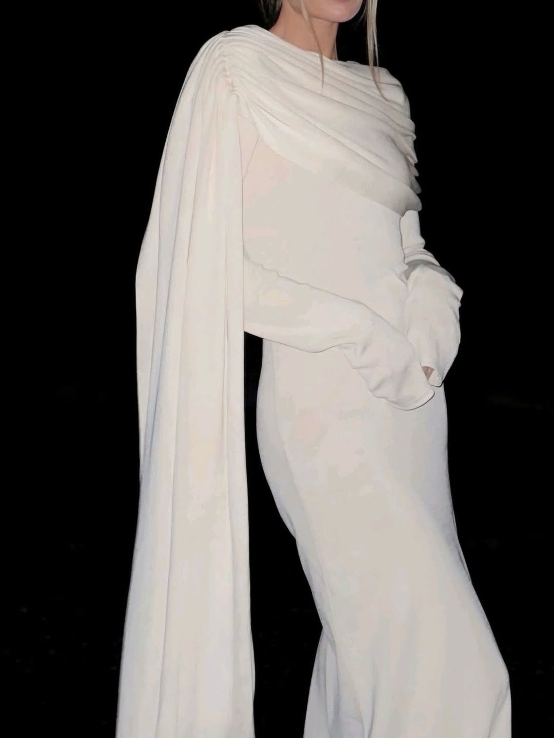 Один из самых красивых красивых и изящных приёмов в дизайне платья, а в зимнем образе драпировки лишь добавляют изысканность и элегантность.