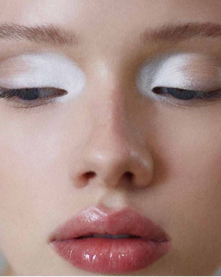 Их используют на веках или во внутреннем уголке глаза, сочетая с нейтральным тоном кожи и спокойным макияжем губ.