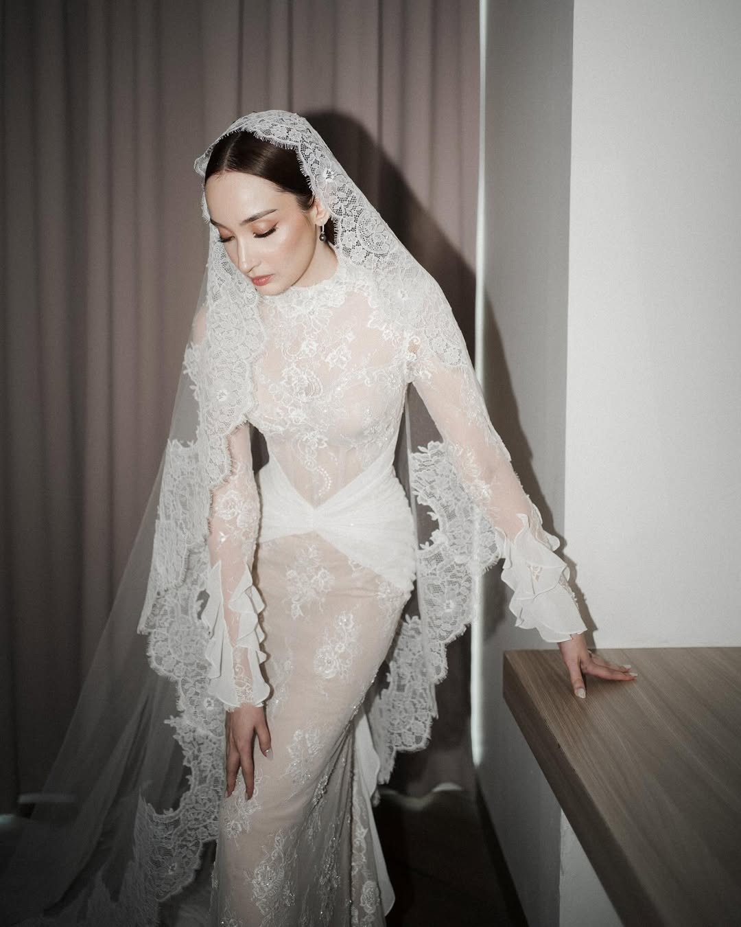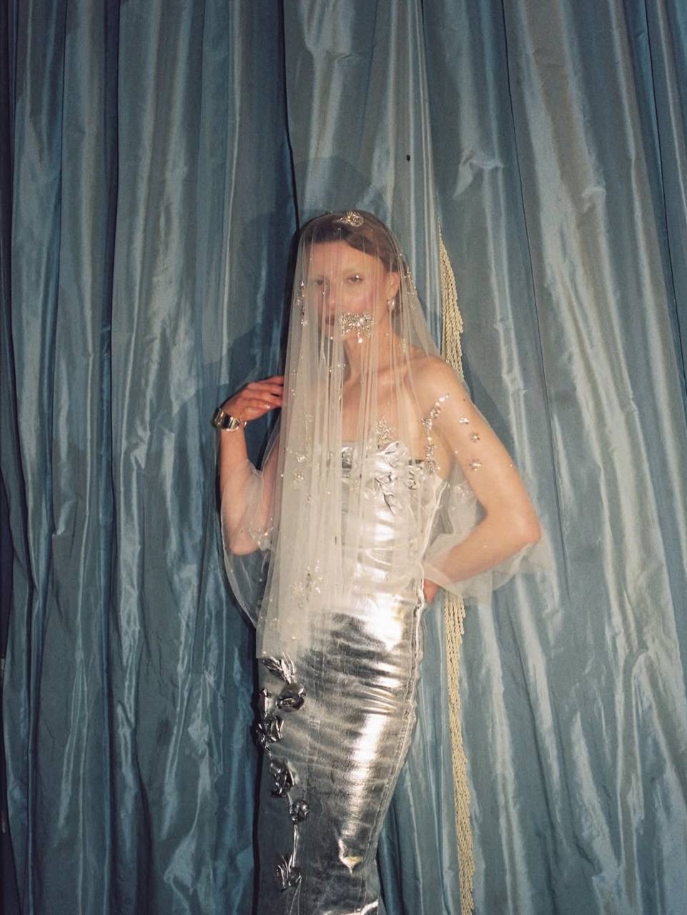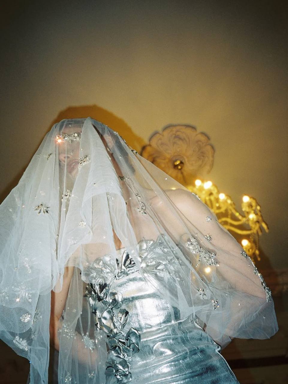 Помимо классической фаты в качестве головного убора можно выбрать меховую шапку или вуаль, расшитую бисером или жемчугом. В любом случае, это сделает образ более интересным и ещё больше усилит зимнюю эстетику.