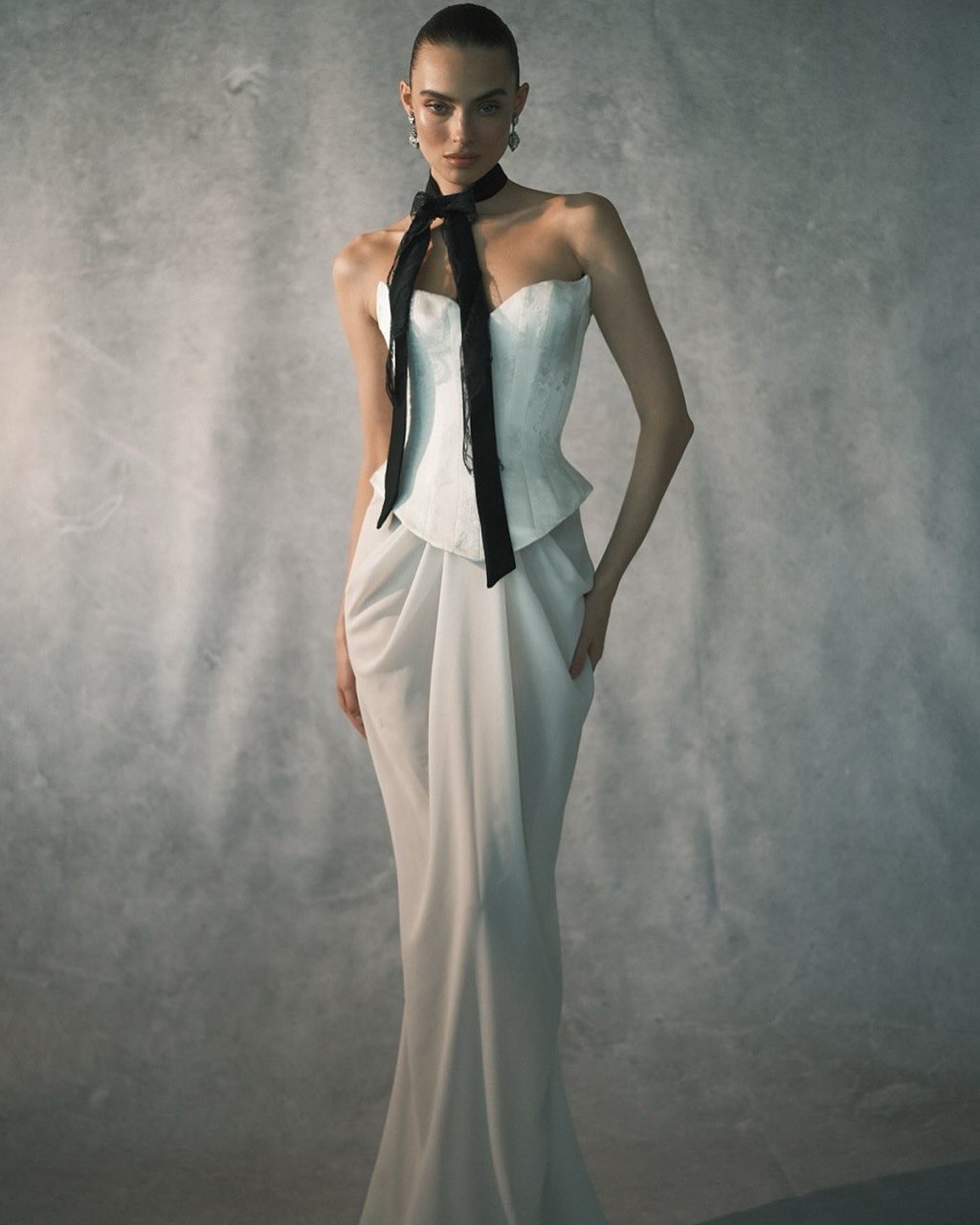 Инфантильный тренд, который не обошёл и нас. Нам очень нравится, как банты смотрятся в отделке фаты, в качестве отдельного аксессуара или как часть платья.