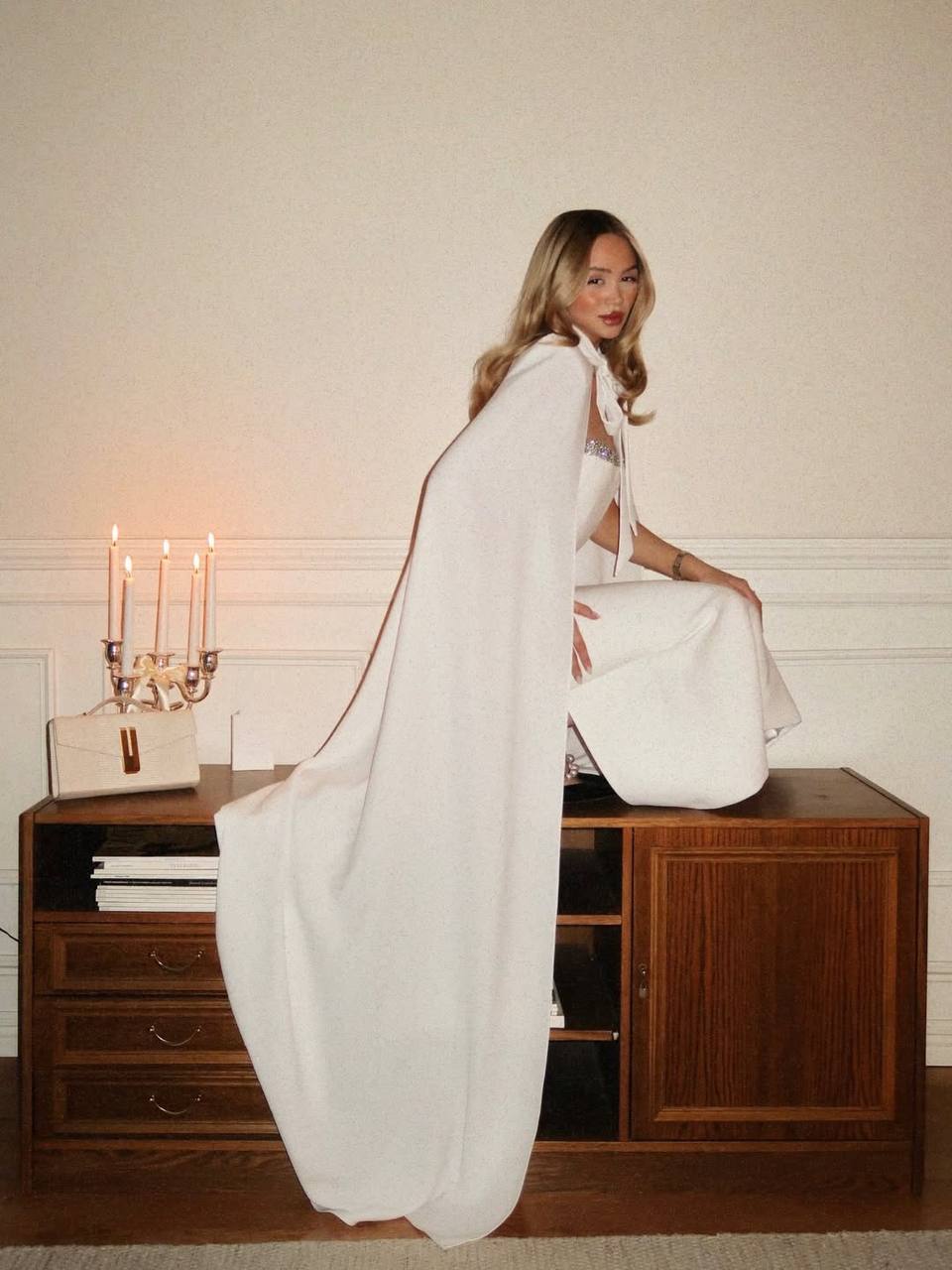 Чаще всего кейп сочетается с минималистичным и простым платьем, поскольку сам становится центральным акцентом.