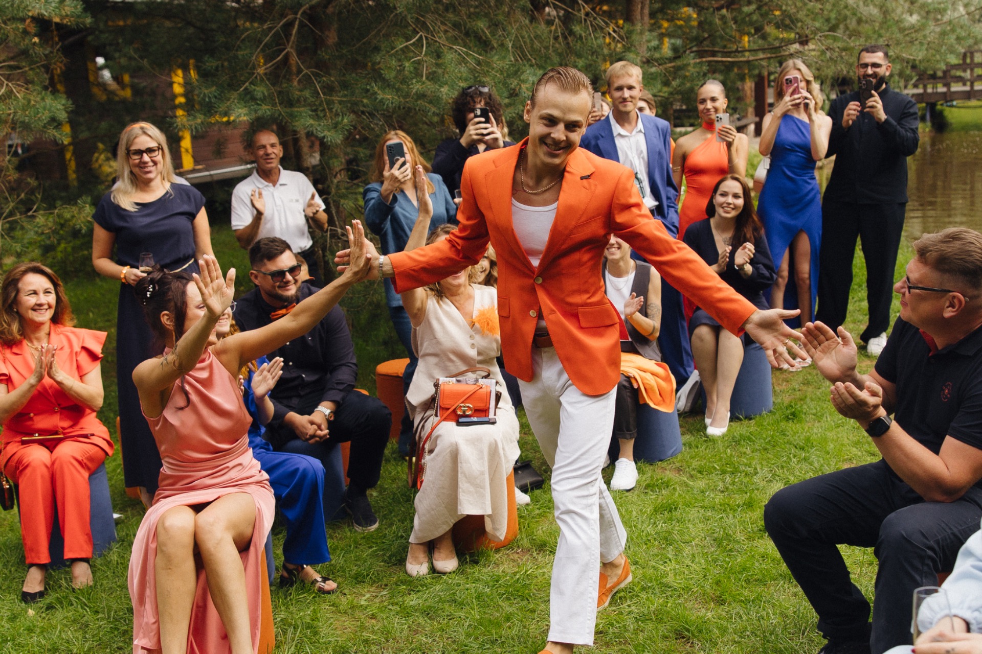 Также мы устроили необычное соревнование за звание следующего жениха: неженатые парни в водоёме наперегонки гоняли на оранжевых катерах, а победителю достался один из них.