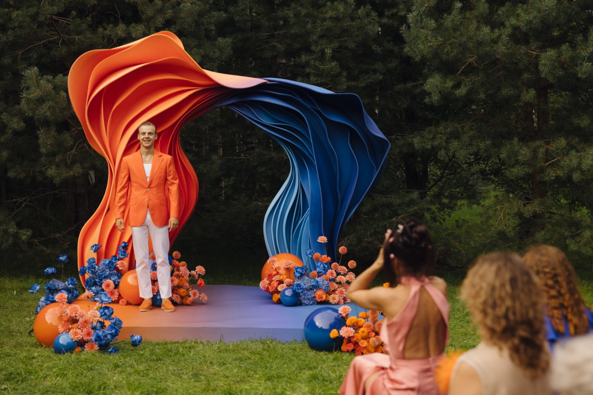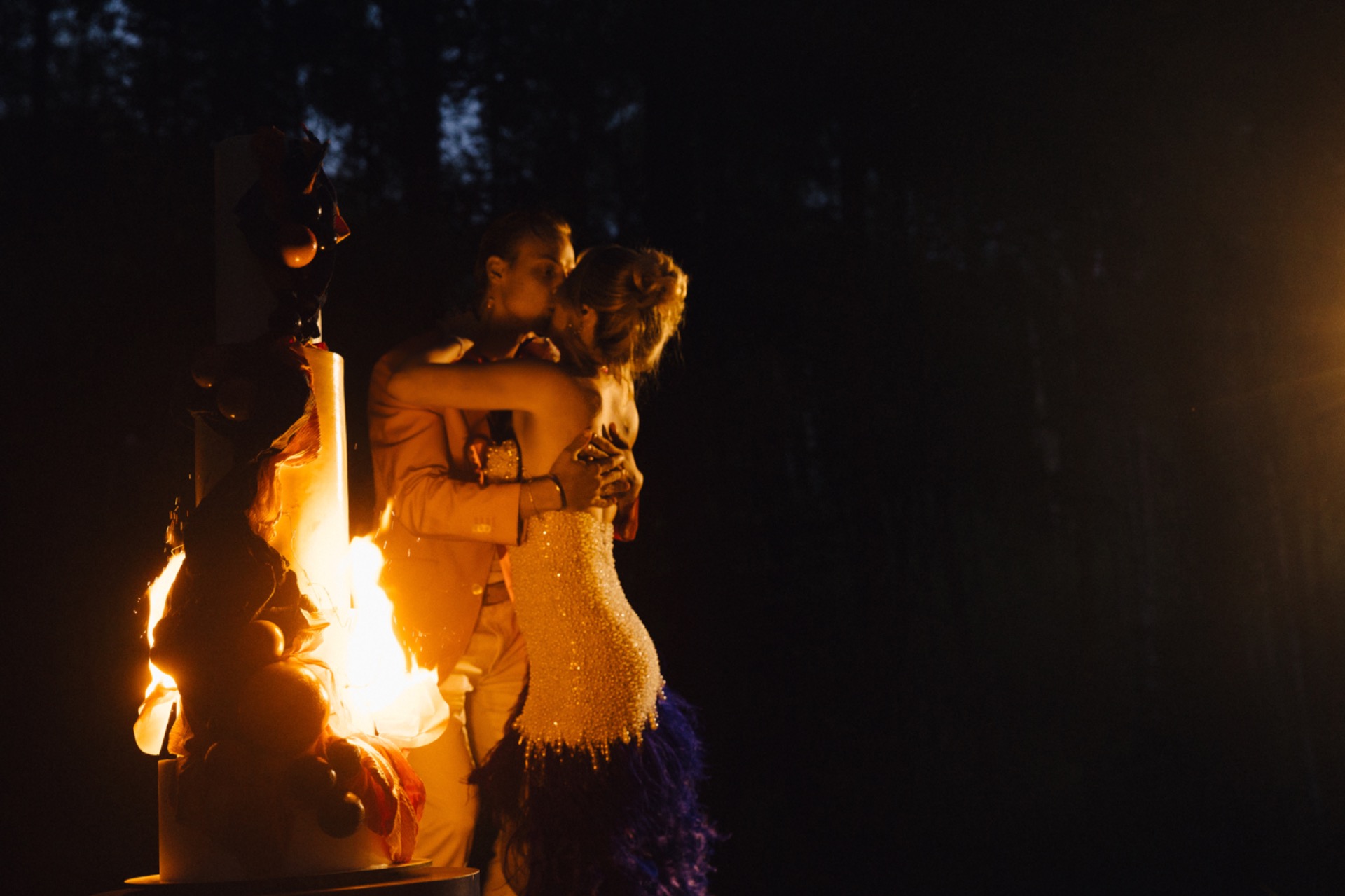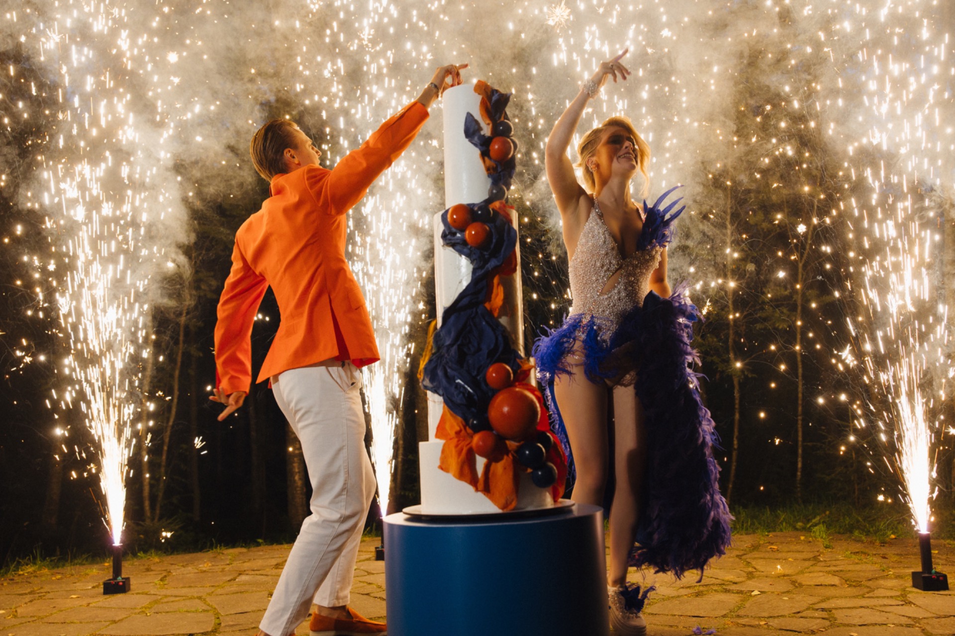 В вопросах декора мы доверились команде. Мы хотели, чтобы было креативно, потому что очень любим выделяться. Кондитера нам тоже порекомендовали — именно того, кто смог воплотить нашу необычную задумку с огнём.