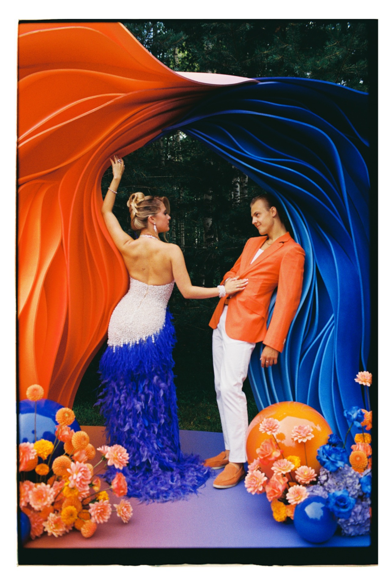 Костюмы мы, конечно, шили на заказ, потому что под наши пожелания магазинам бы точно не удалось подстроиться. Нам хотелось, чтобы Влад выглядел брутально, дерзко и ярко, а я была просто шикарной. И кажется, что у нас всё получилось прекрасно.